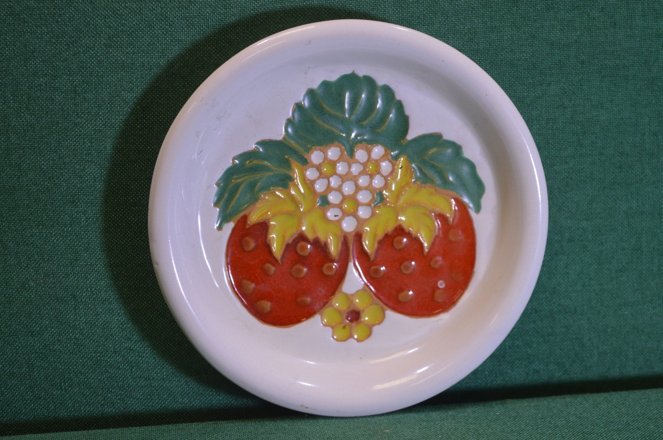 Тарелка настенная рельефная керамическая "Ягоды клубника". Керамика. Бирка. Tekt. Эстония. СССР.