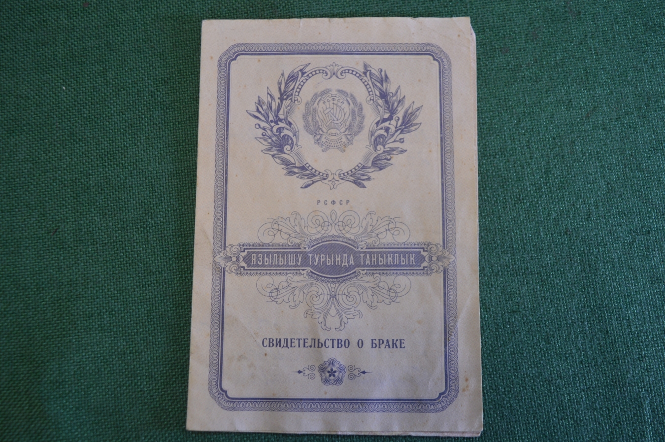 Свидетельство о браке. Сотрудник НКВД. Двуязычное. Татарский язык. СССР. 1955 год.