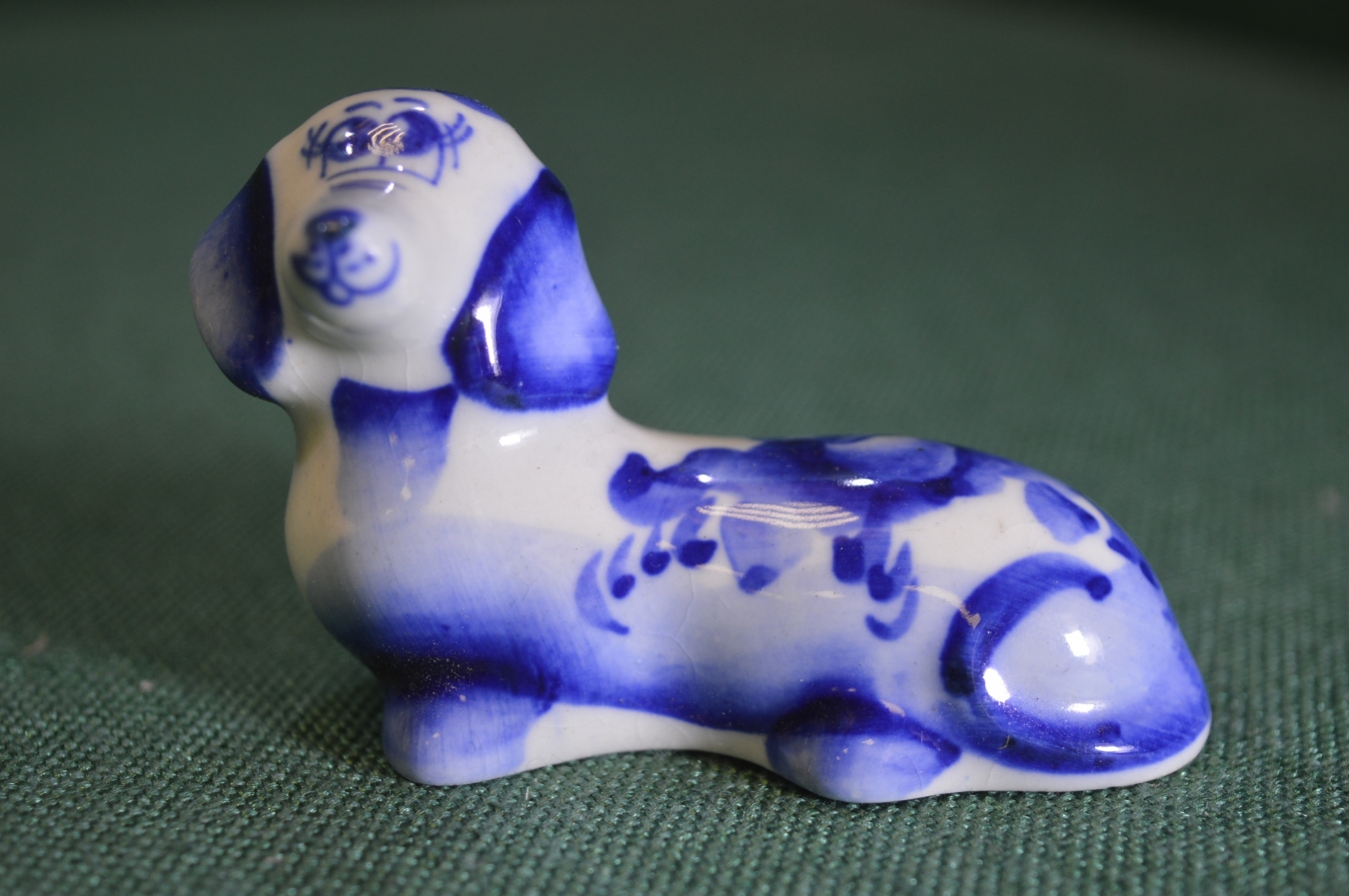 Фигурка статуэтка миниатюрная "Собака собачка Такса". Фарфор. Керамика. Гжель.