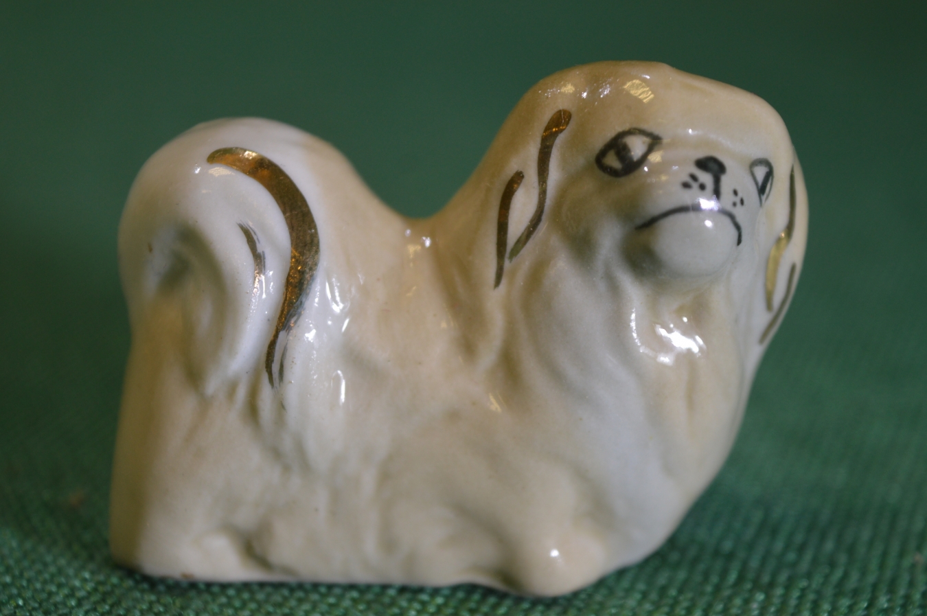 Статуэтка фарфоровая миниатюрная "Пекинес собака". Фарфор. Украина.