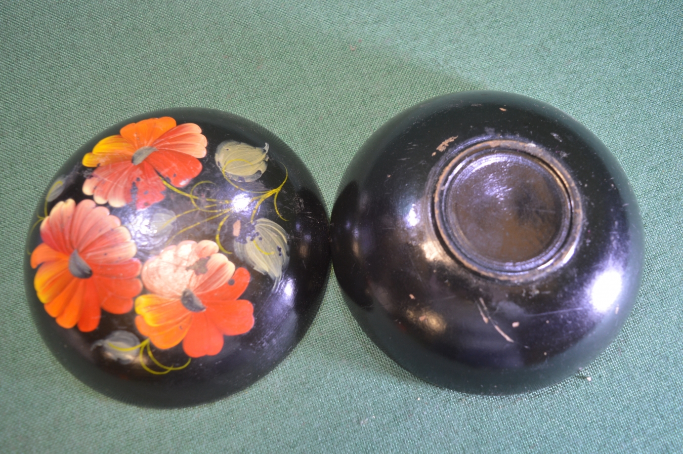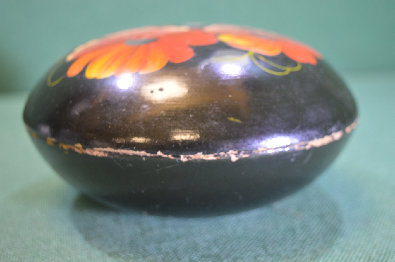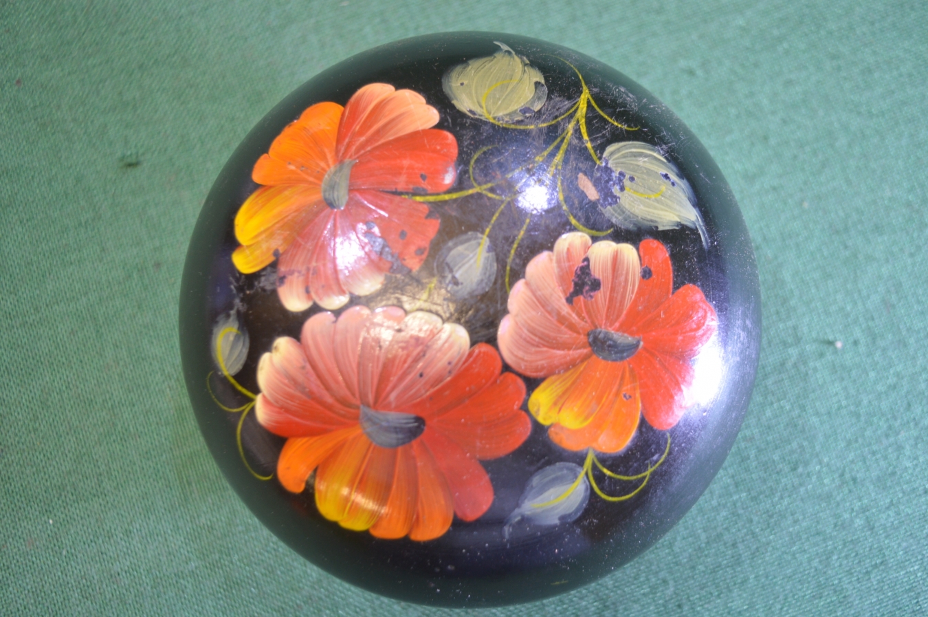 Шкатулка деревянная круглая с крышкой. Цветы. Дерево. Роспись. СССР.
