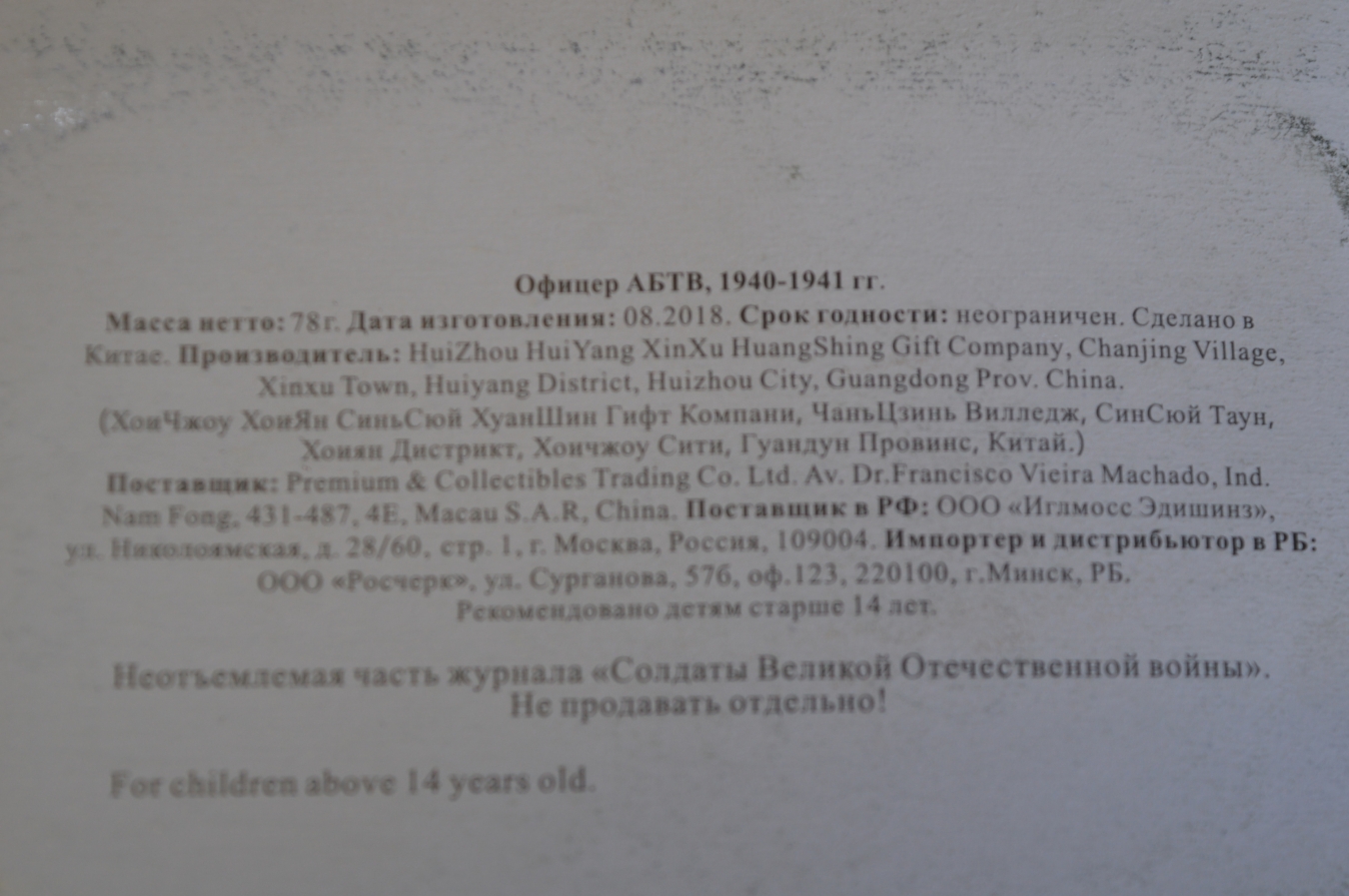 Солдатик оловянный "Офицер АБТВ". Роспись. Деагостини. Deagostini. Журнал.