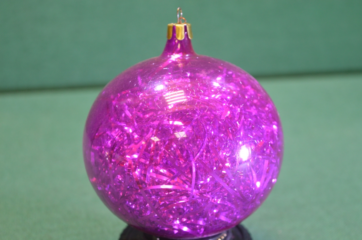 Игрушка елочная новогодняя. Шар с мишурой. Стекло. СССР.