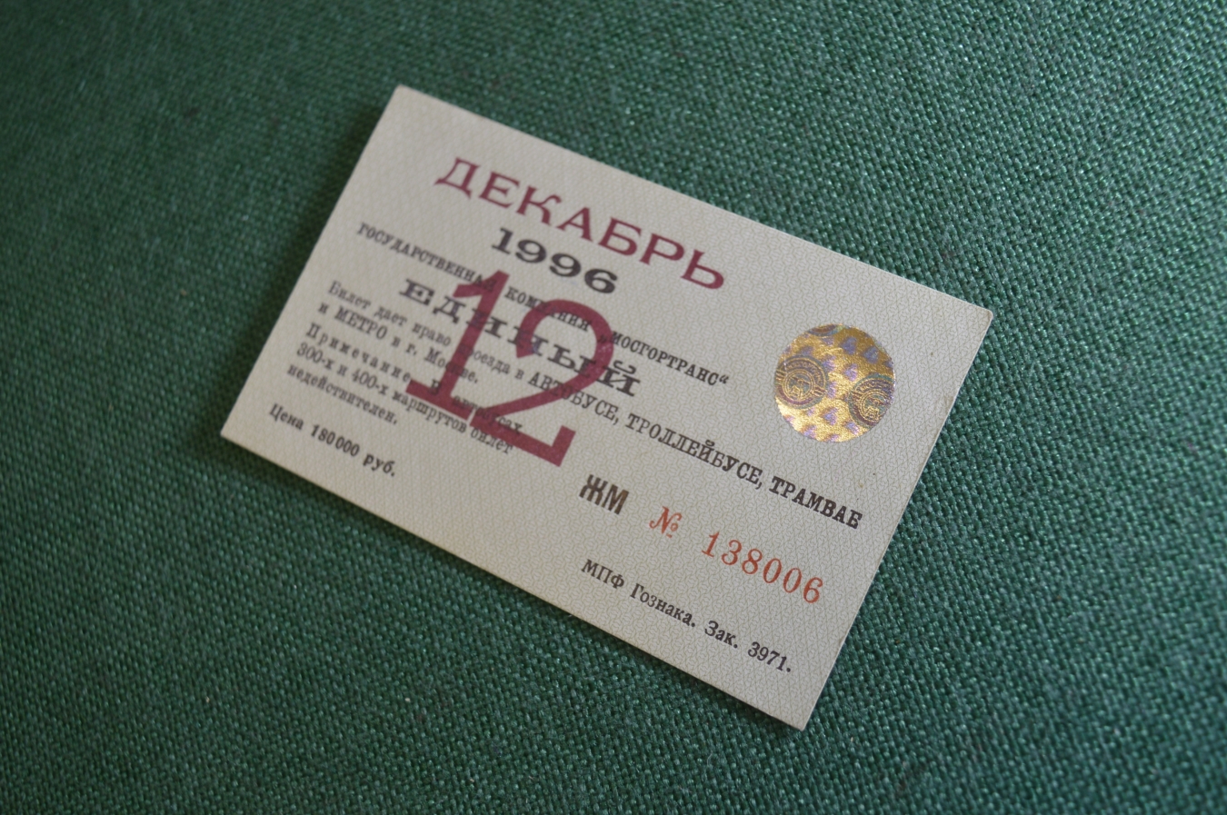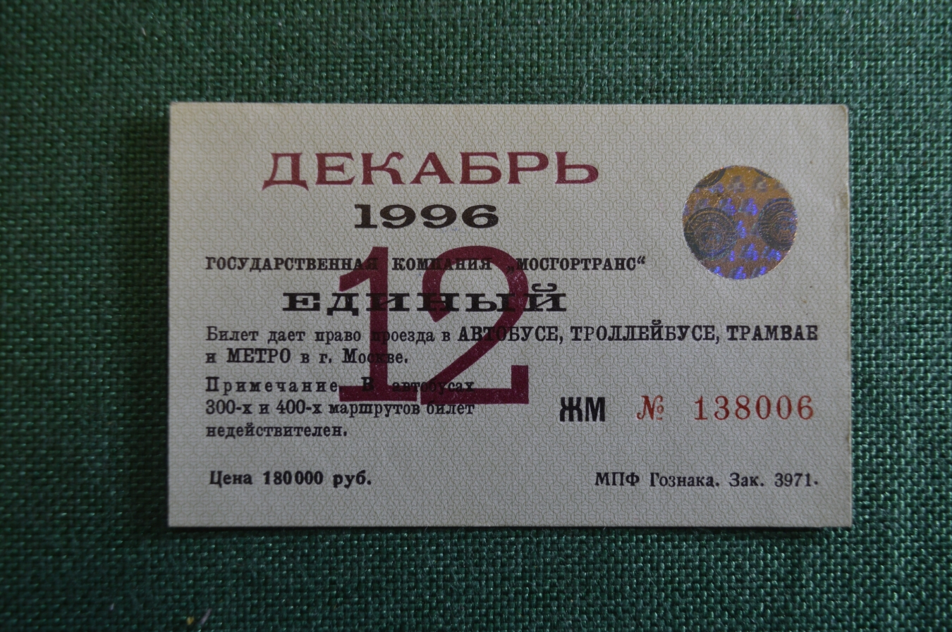 Проездной билет, Единый. Декабрь 1996 года. Москва, Мосгортранс.