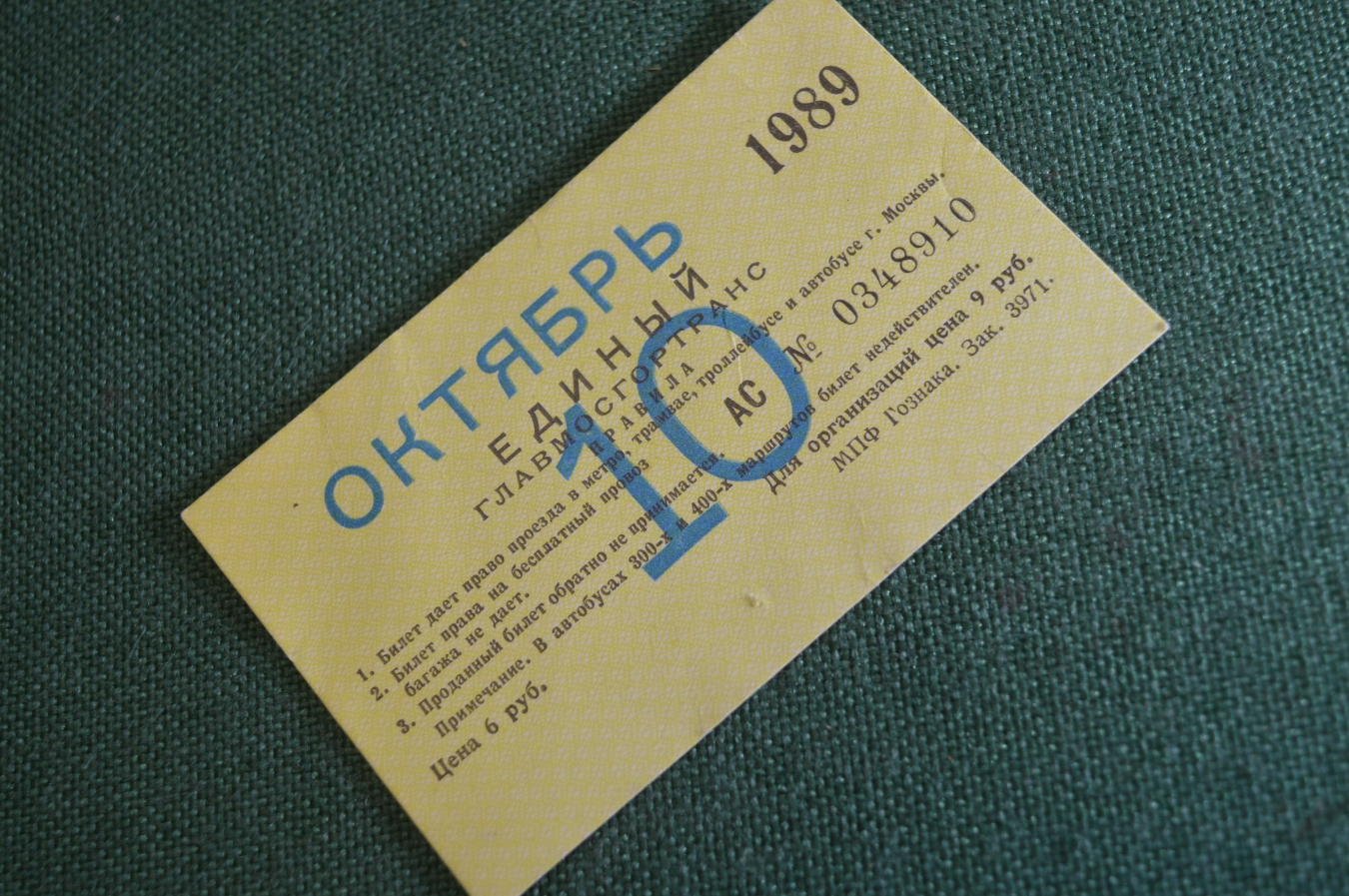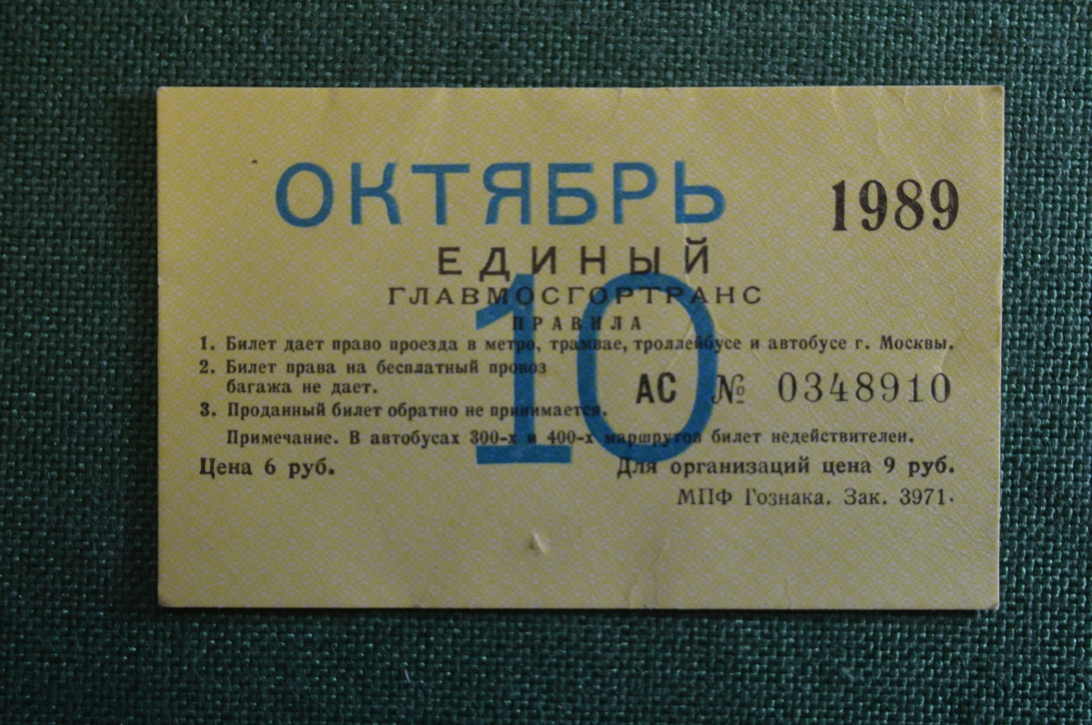 Проездной билет, Единый. Октябрь 1989 года. Москва, Мосгортранс.