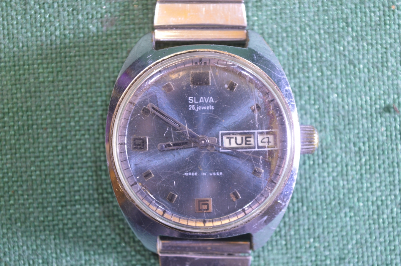 Часы наручные "Слава, Slava". 26 камней. Календарь. Механические, мужские. Рабочие.