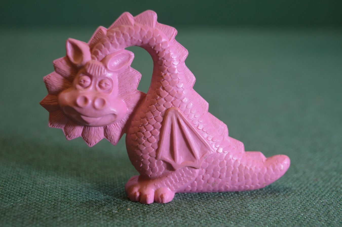 Игрушка фигурка "Дракон". Розово фиолетовый. Резина. Клеймо цена. СССР. #2