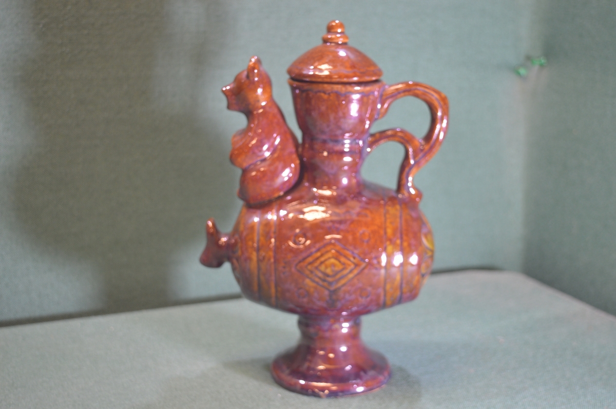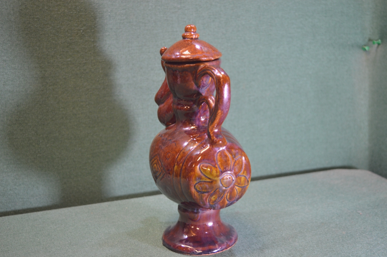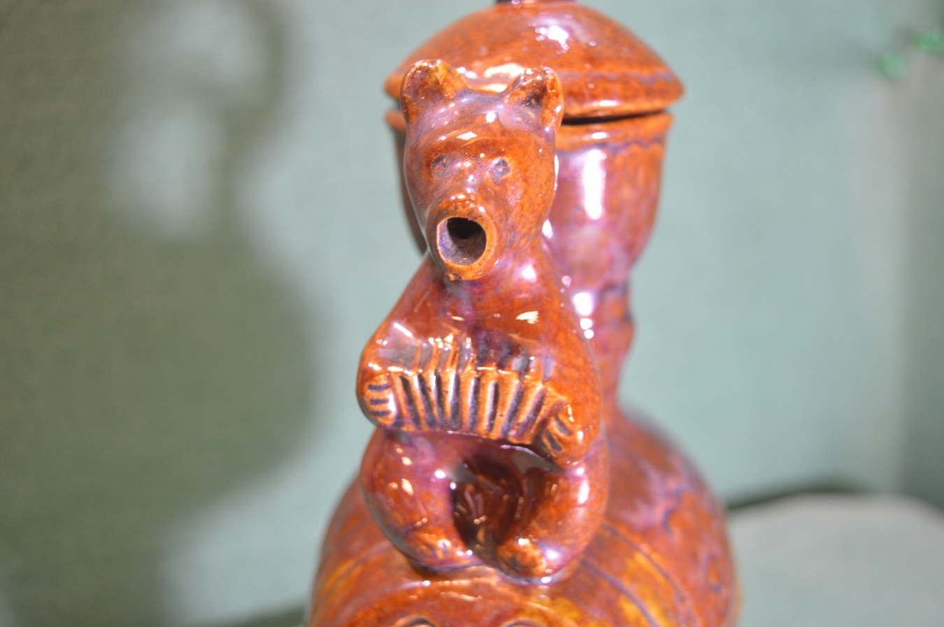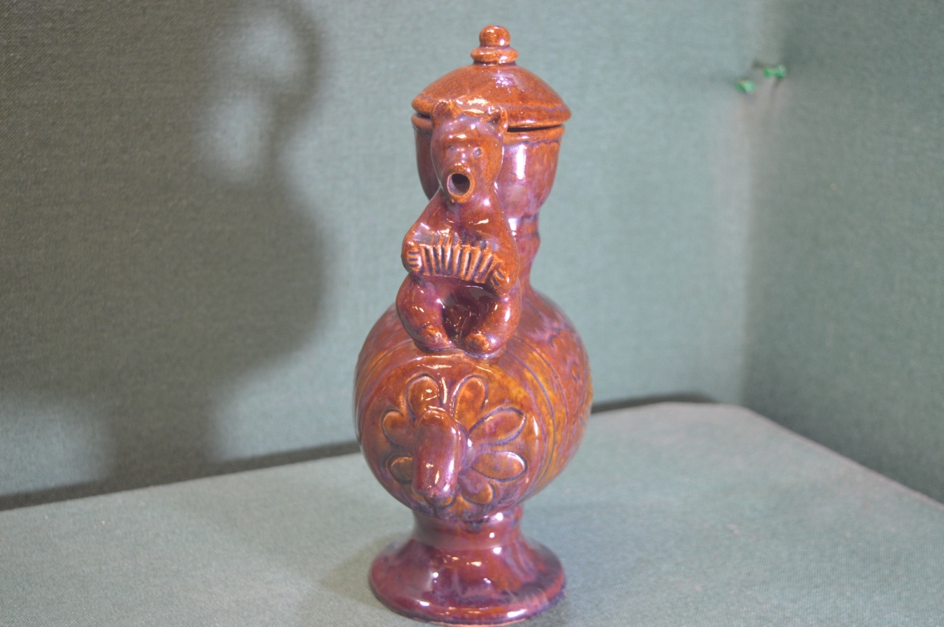 Кувшин кумган керамический "Медведь с гармошкой". Обливная керамика. СССР.