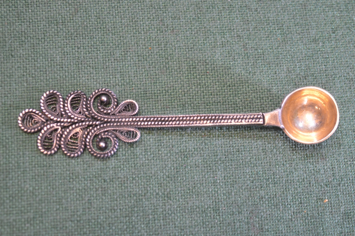 Ложка ложечка для специй или горчицы. Скань. Филигрань. СССР.
