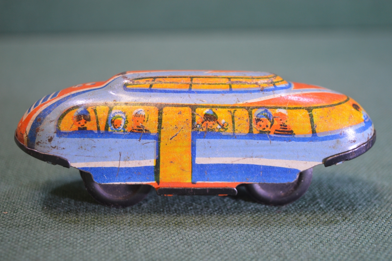 Игрушка жестяная "Автобус с трамплином". Машинка. Жесть. СССР.