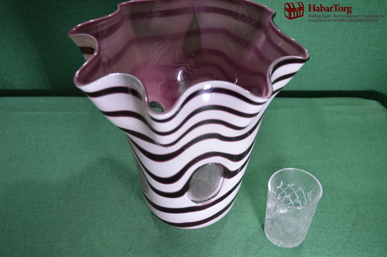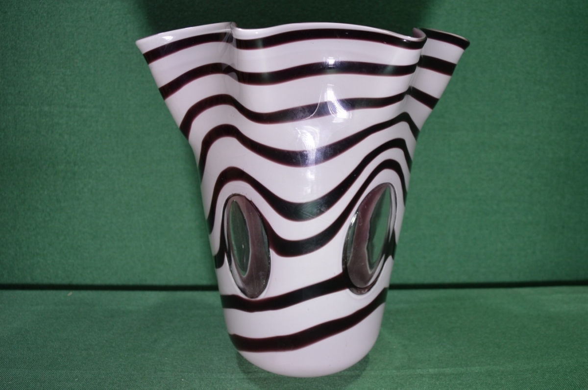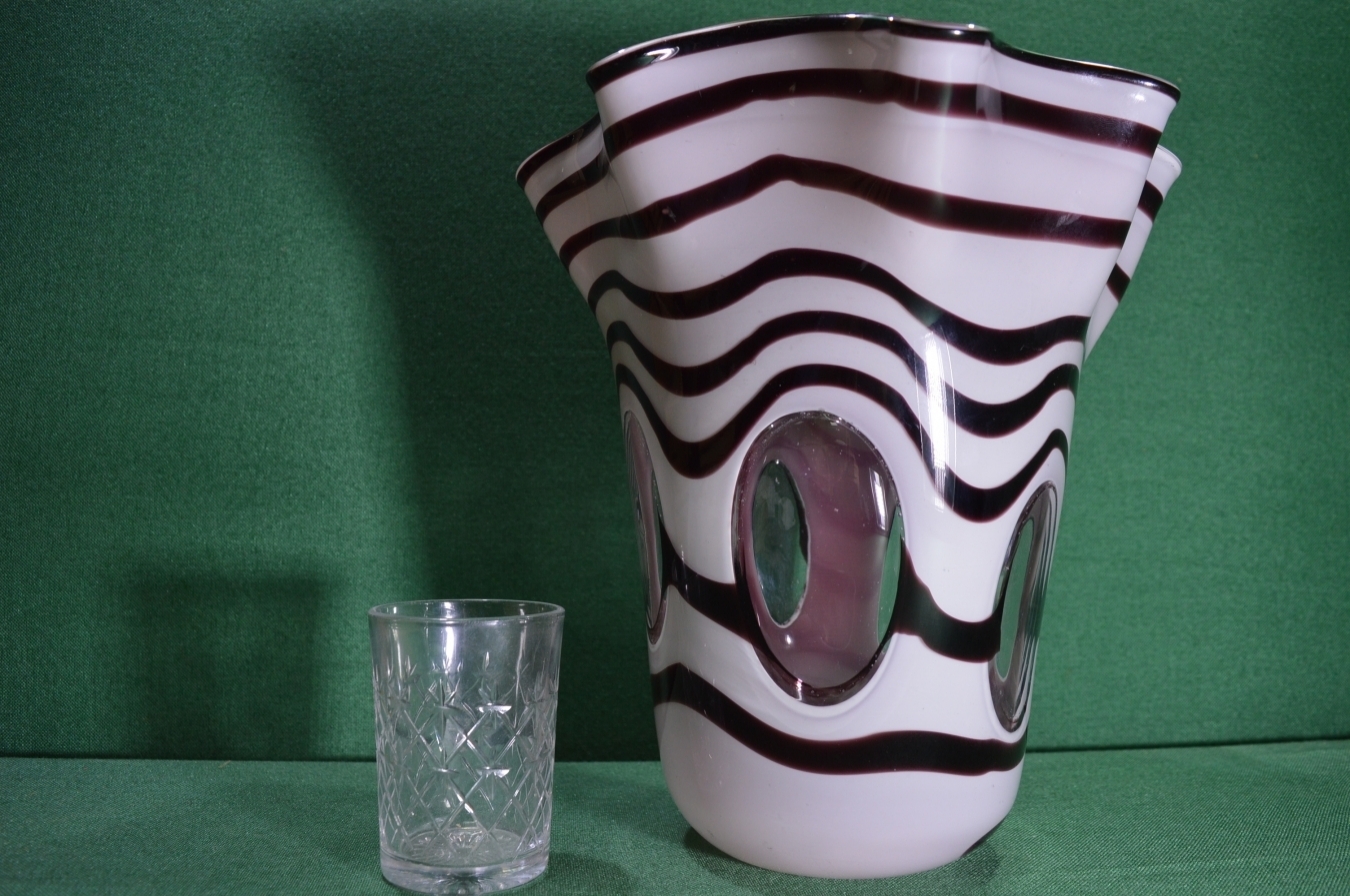 Очень большая ваза "Зебра", цветное стекло, со вставками прозрачного стекла.