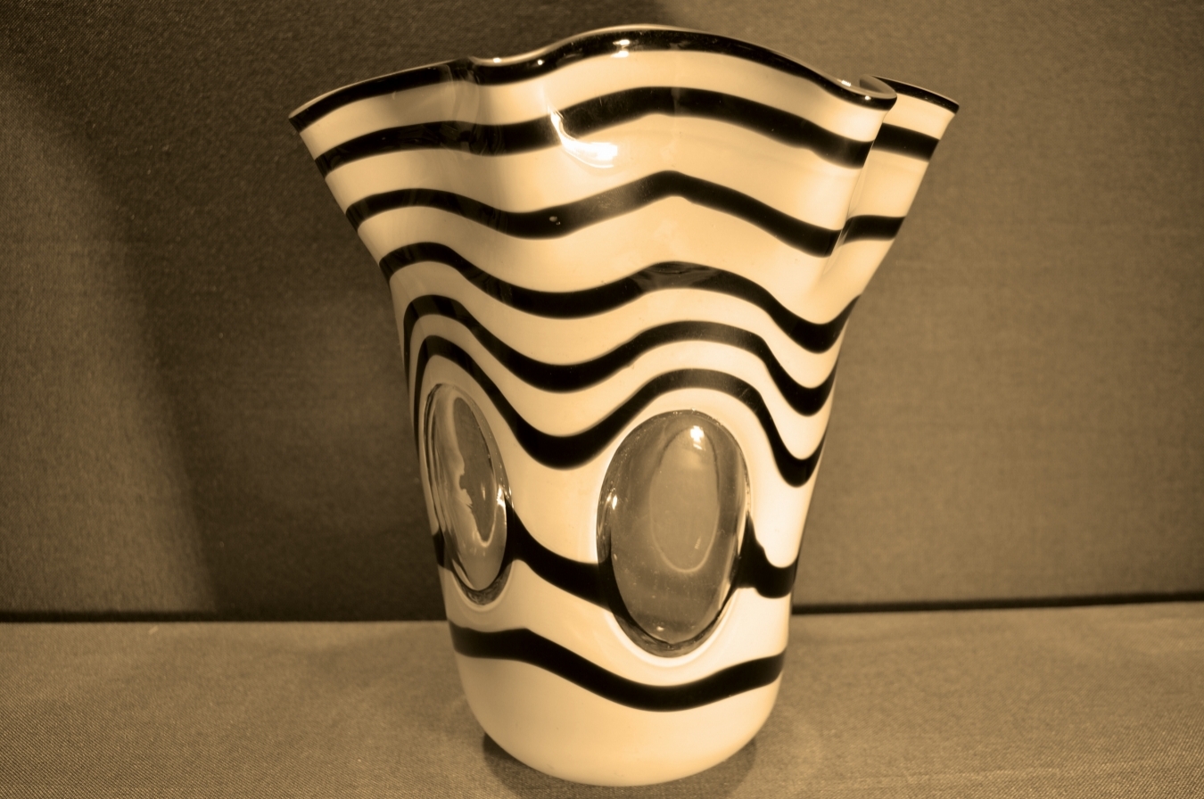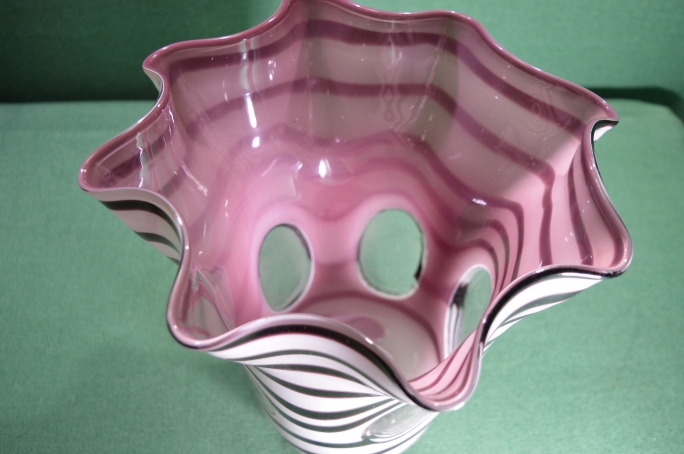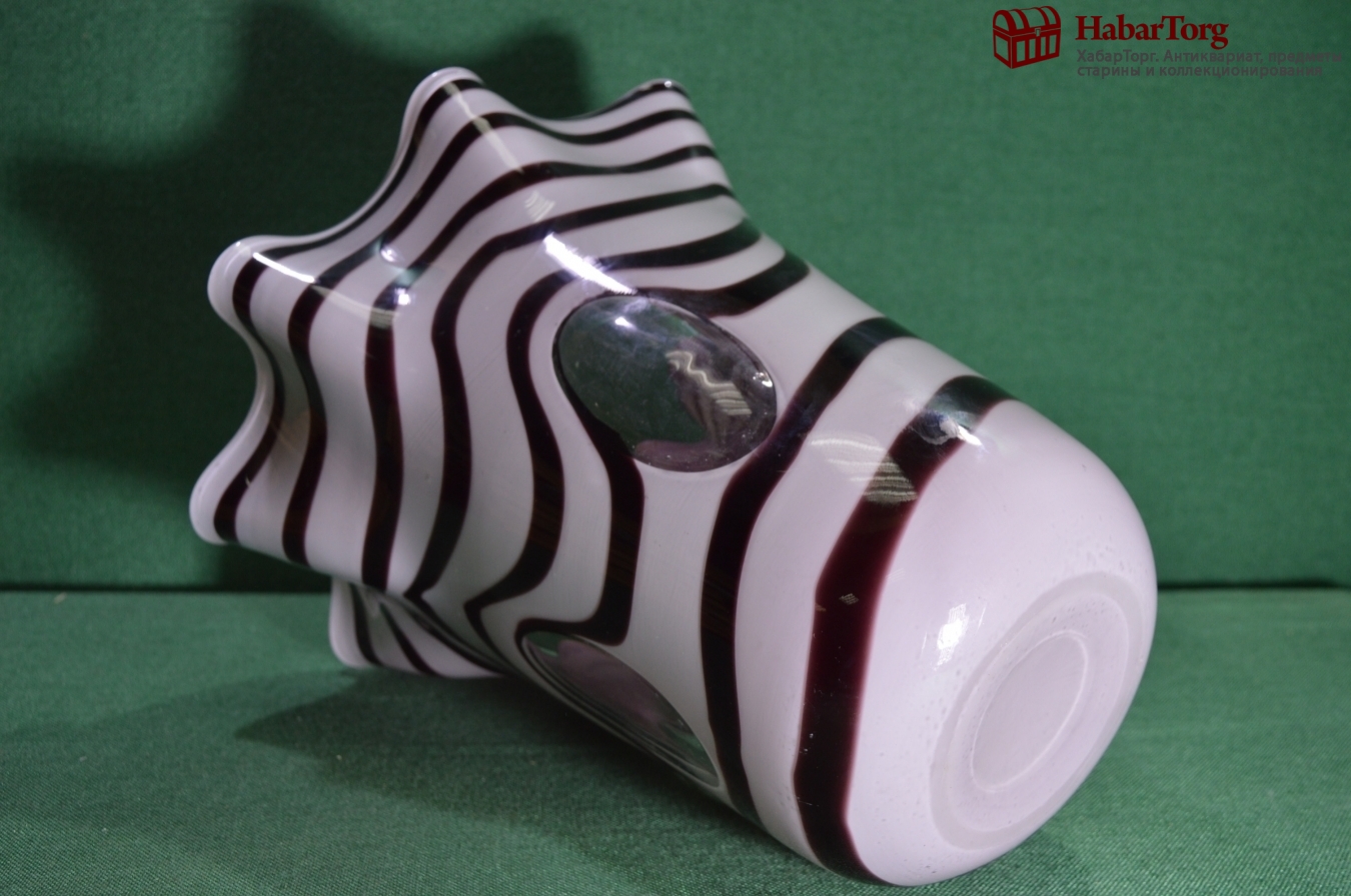 Очень большая ваза "Зебра", цветное стекло, со вставками прозрачного стекла.