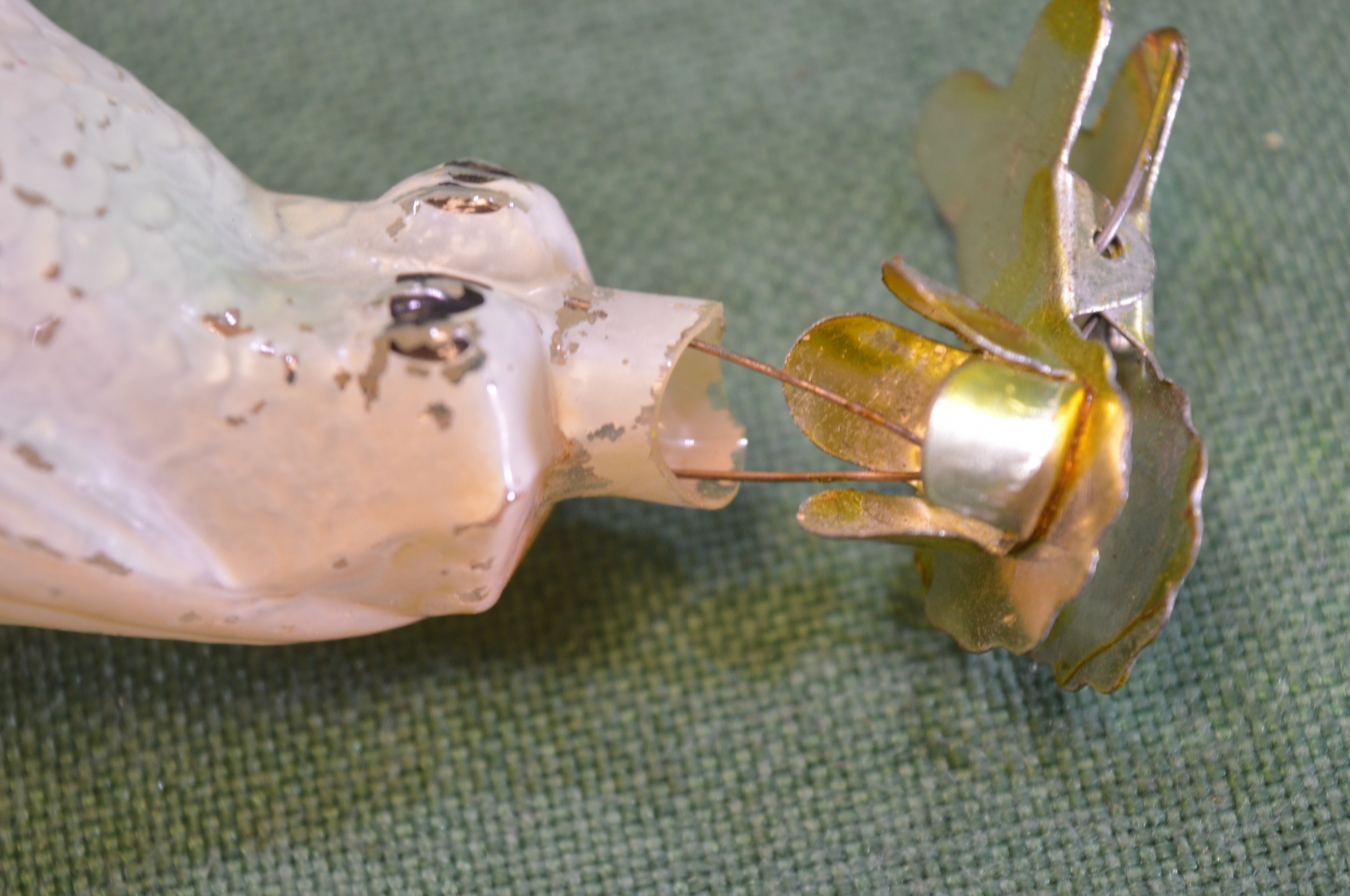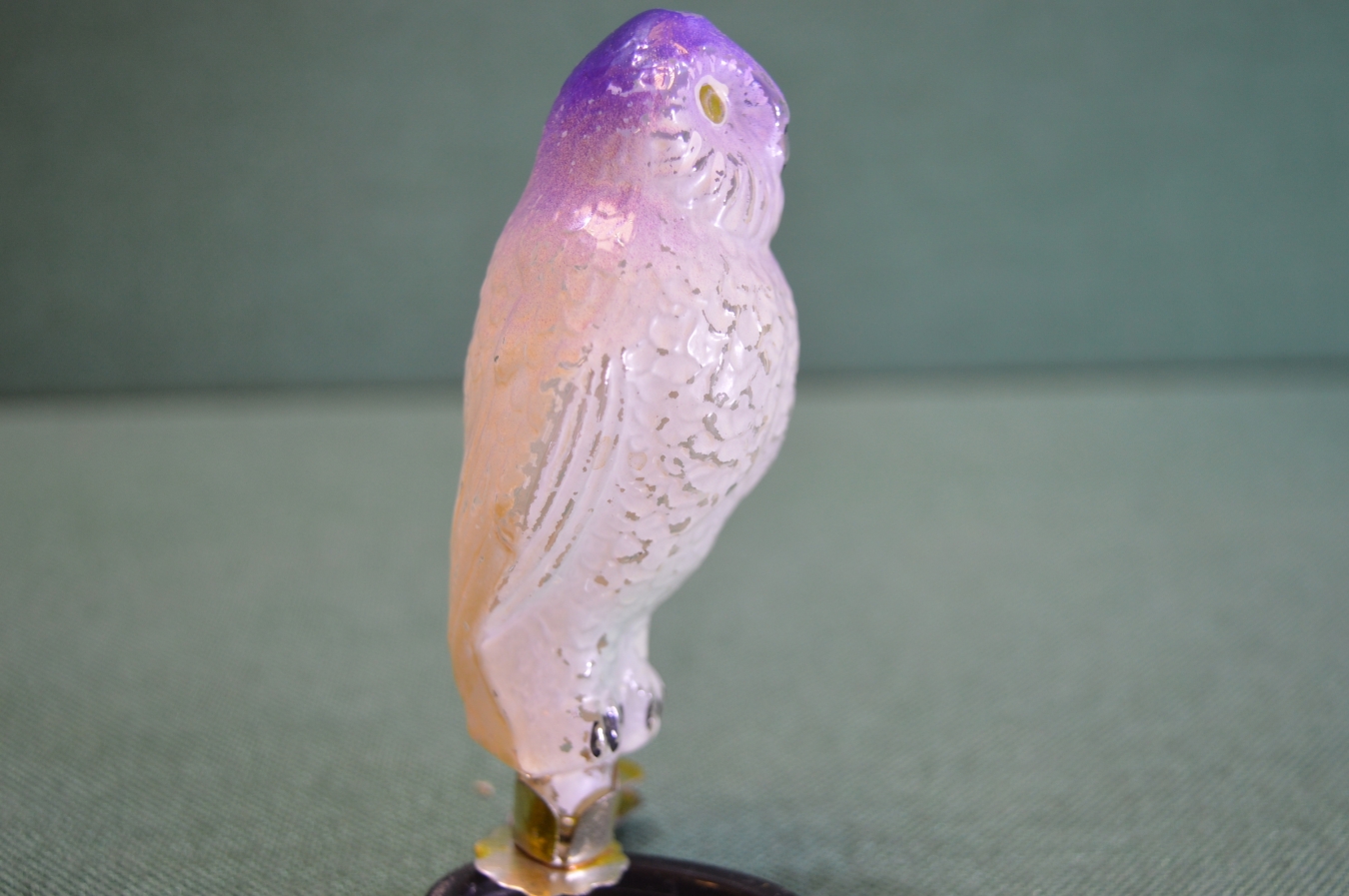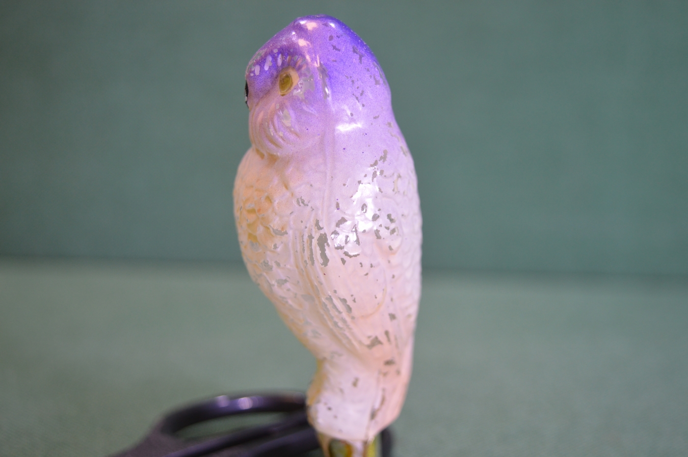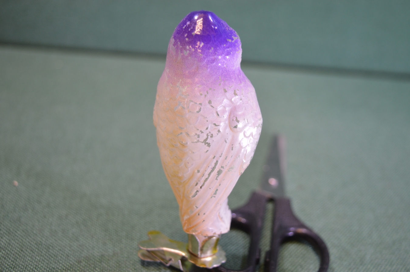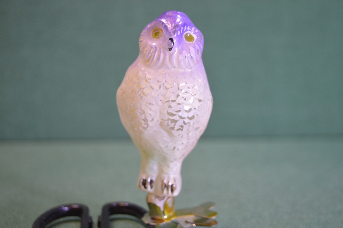Елочная игрушка стеклянная "Сова умная, филин". Стекло, прищепка. СССР.