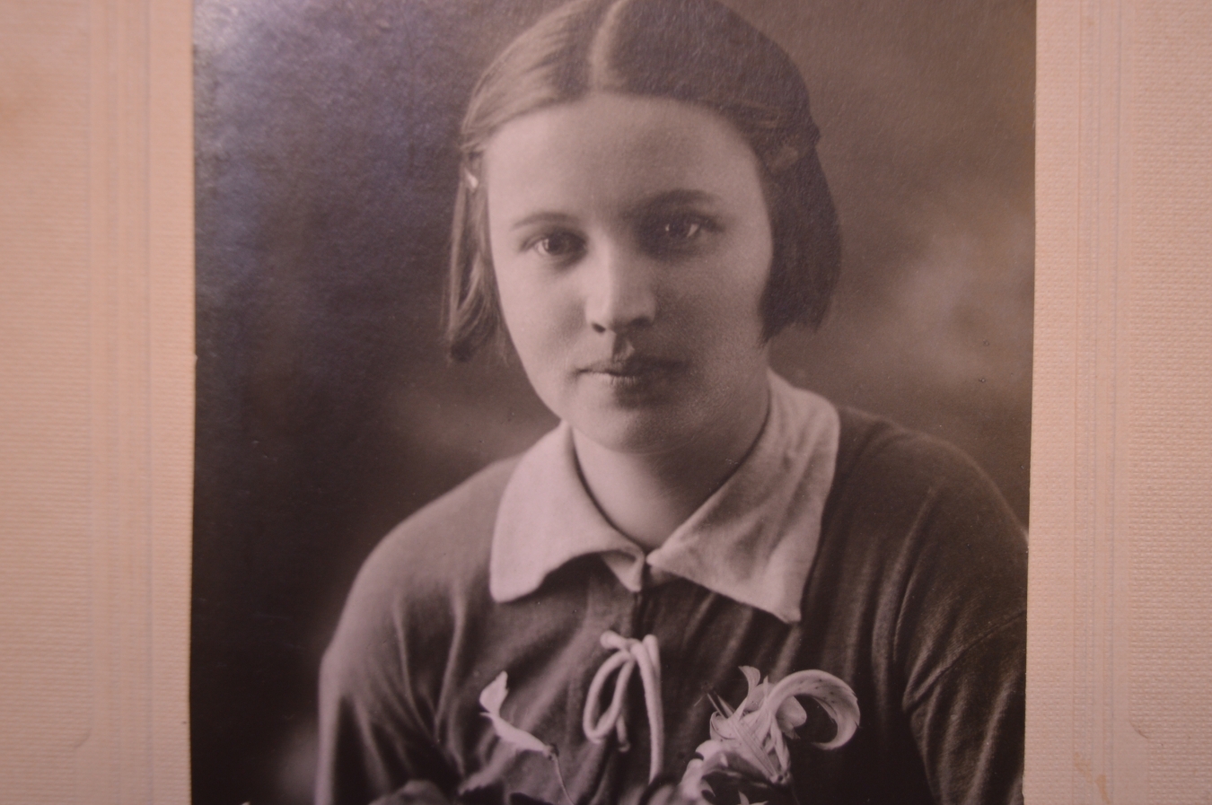 Фотография старинная "Девушка с цветами". Дышинский, Алапаевск. 1931 год.