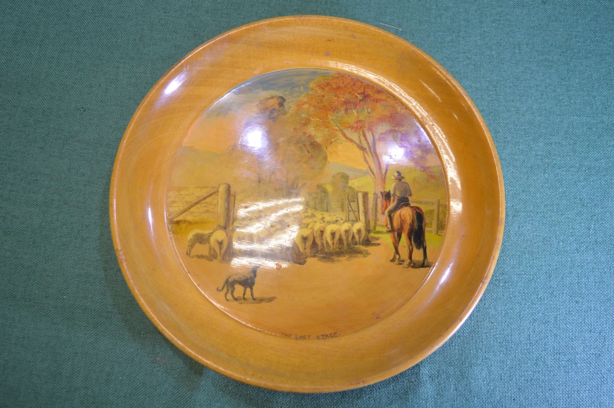 Тарелка деревянная. Дерево. Лаковая миниатюра. Роспись. Австралия - СССР. 1959 год.