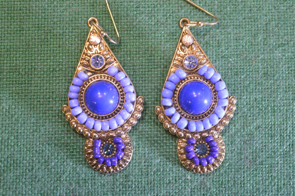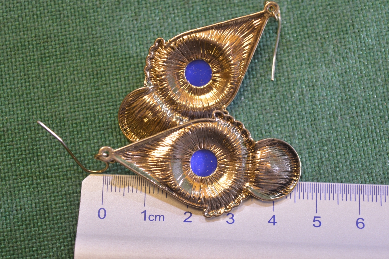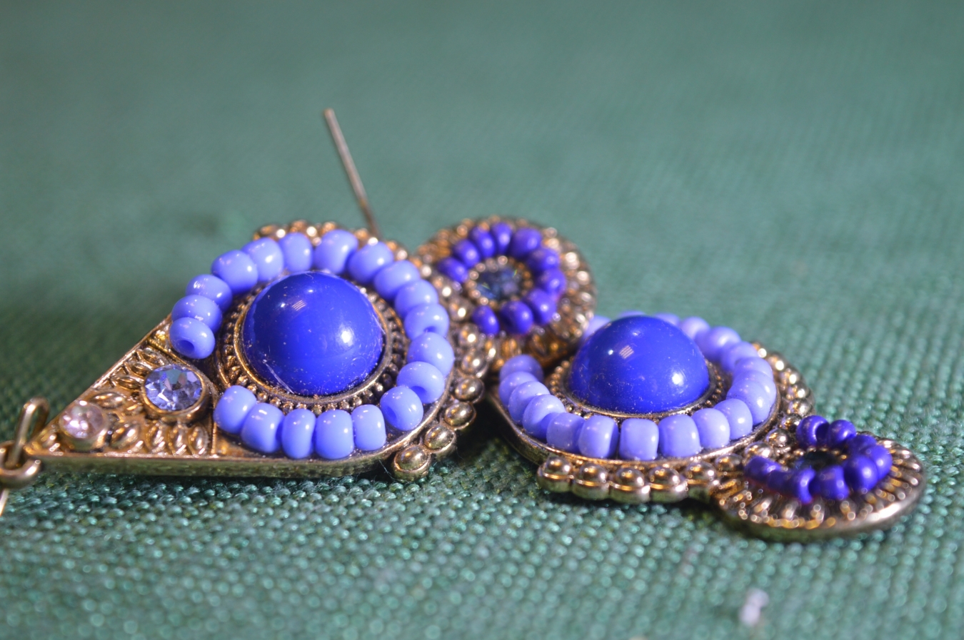 Серьги, сережки сине голубые. Восточные мотивы. Металл, вставки.