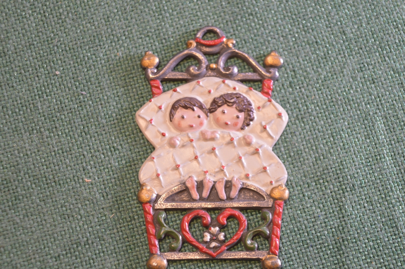 Знак медальон "Дети в кровати". Олово. Роспись. Клеймо. Старая Германия. 1930-1940е.