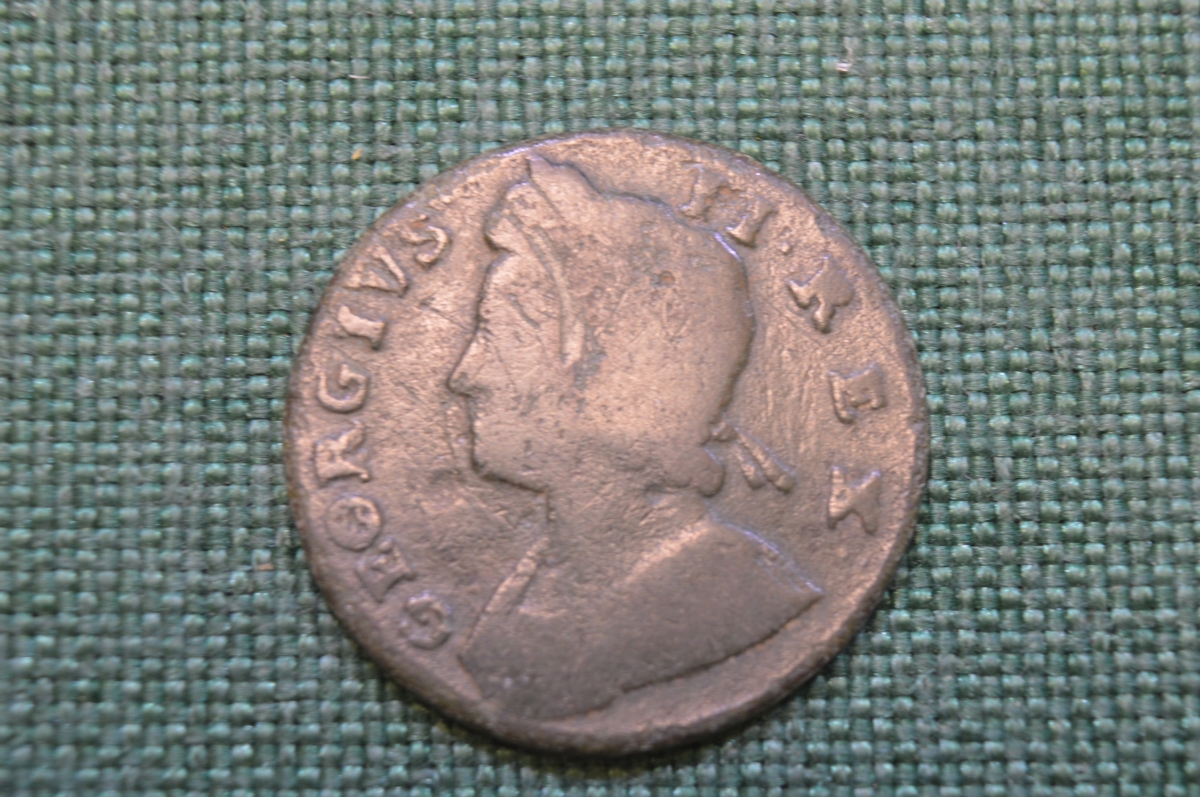 Монета 1 фартинг. Георг II. Великобритания, 1738 (?) год.