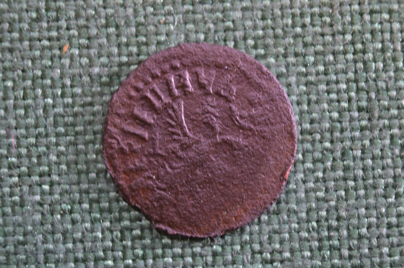 Монета Полушка 1707 года. Петр I, Российская Империя.