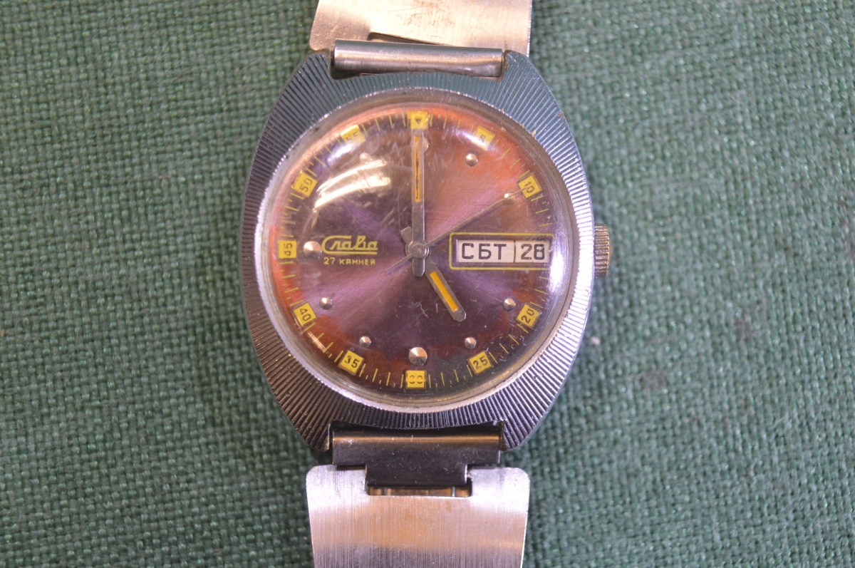 Часы наручные мужские "Слава", 27 камней. Календарь. Нужен небольшой ремонт.
