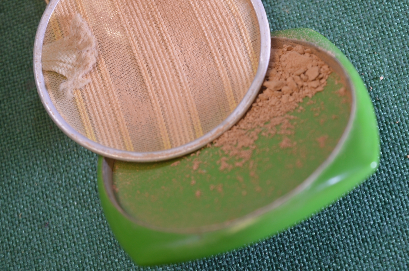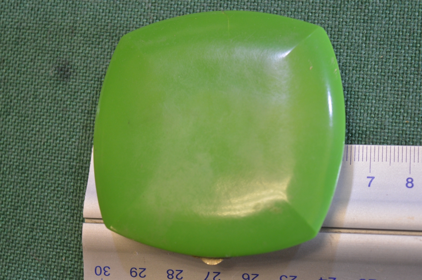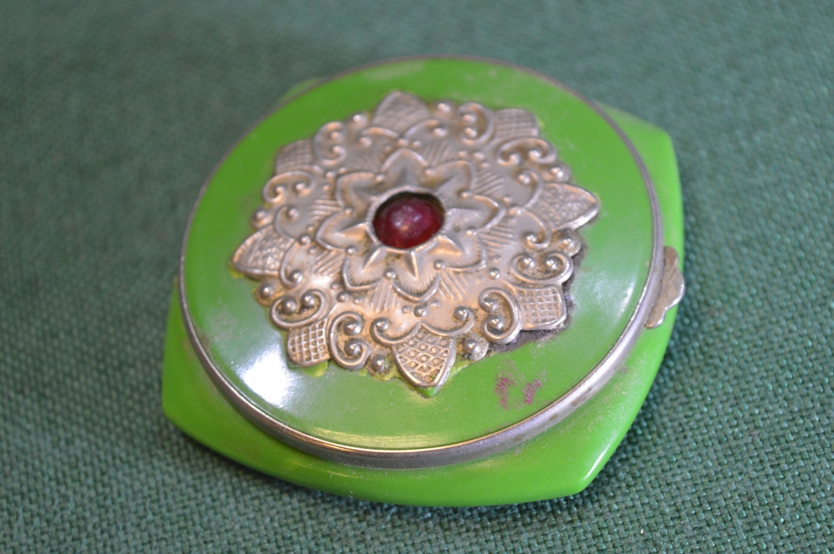 Пудреница зеленая, с зеркалом. Пластик, металл. СССР.