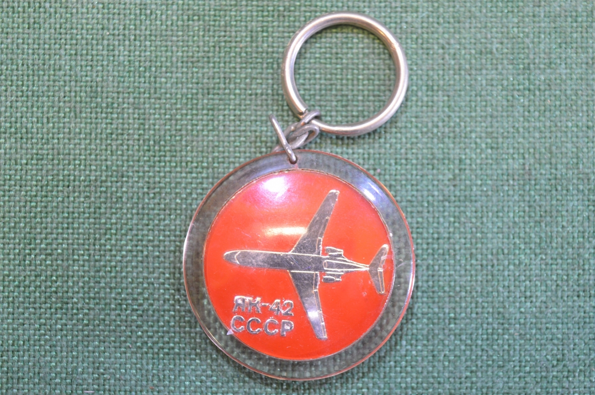 Брелок "ЯК - 42". Самолет, авиация. Красный. СССР.