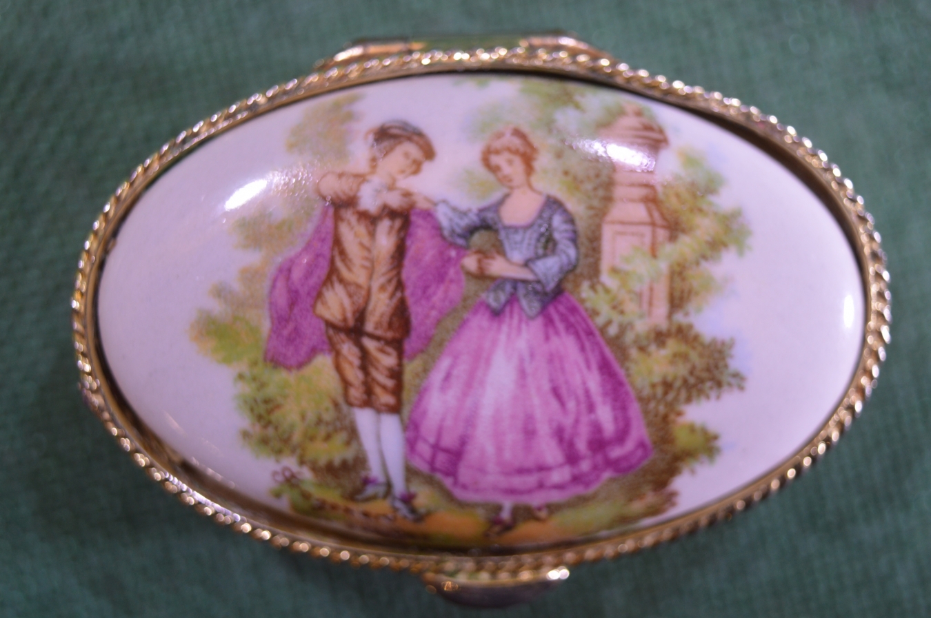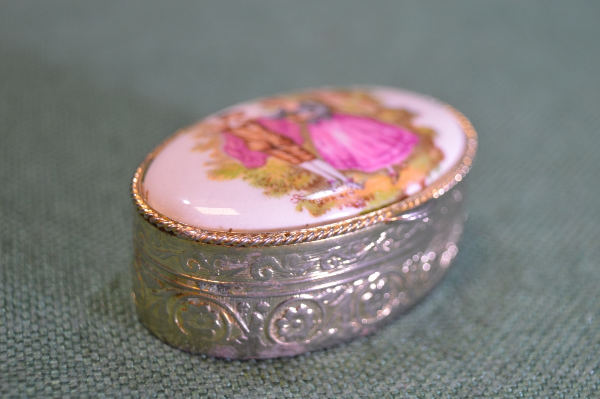 Шкатулка для румян помады, мелочевница. Сюжетный рисунок.