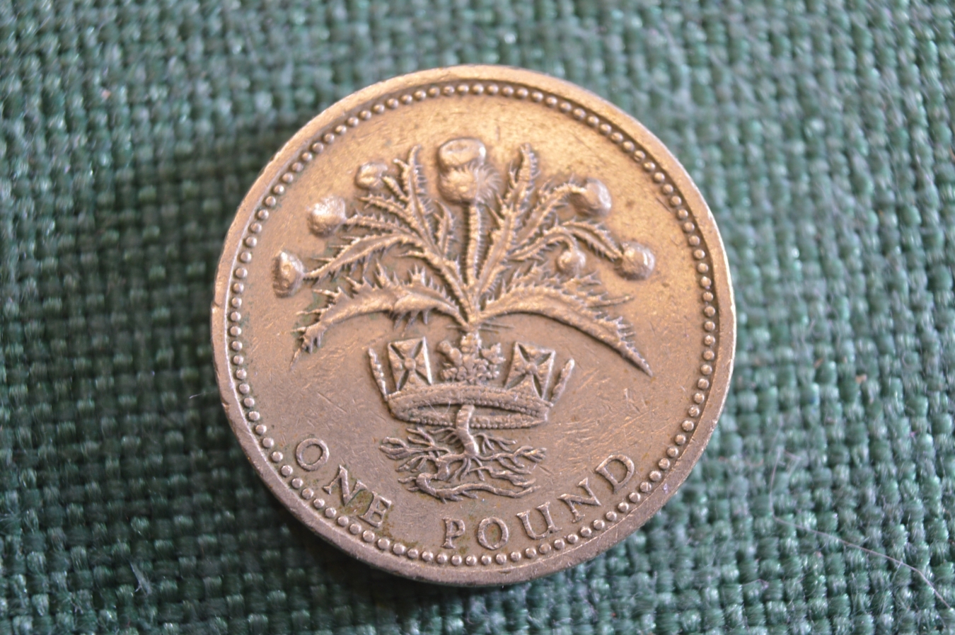 Монета 1 фунт 1984 год. One pound. Чертополох. Елизавета II, Великобритания.