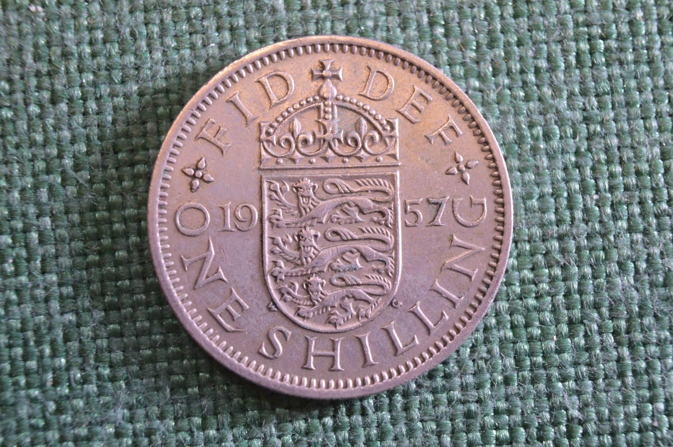 Монета 1 шиллинг 1957 год. Shilling. Елизавета II, Великобритания.