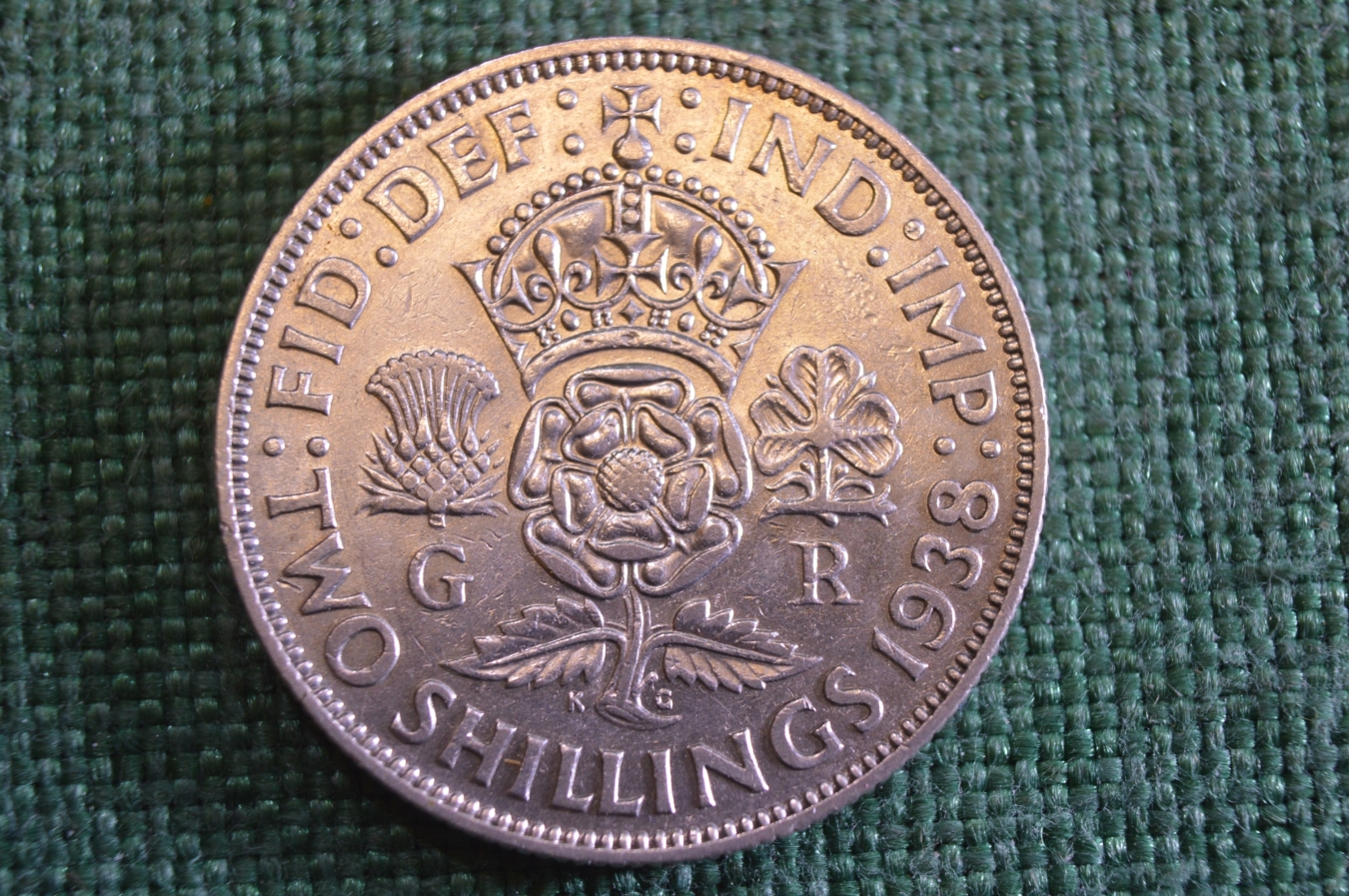 Монета 2 шиллинга 1938 год. Shilling. Серебро. Георг VI, Великобритания.