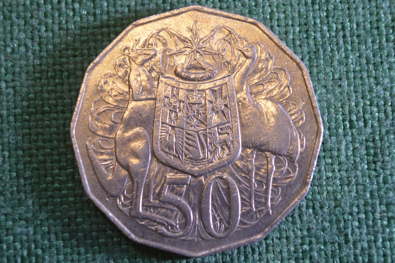 Монета 50 центов 1983 год. Кенгуру, страус. Елизавета II, Австралия.