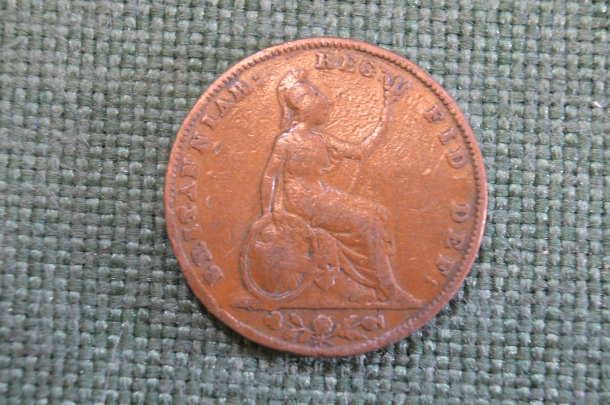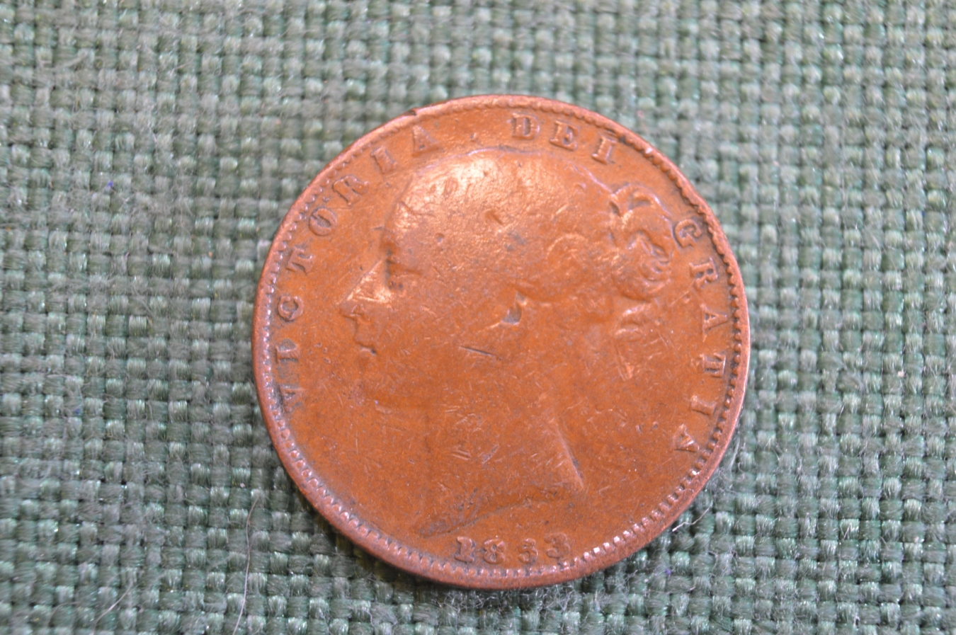 Монета 1 фартинг 1853 года. Farting. Виктория, Великобритания.