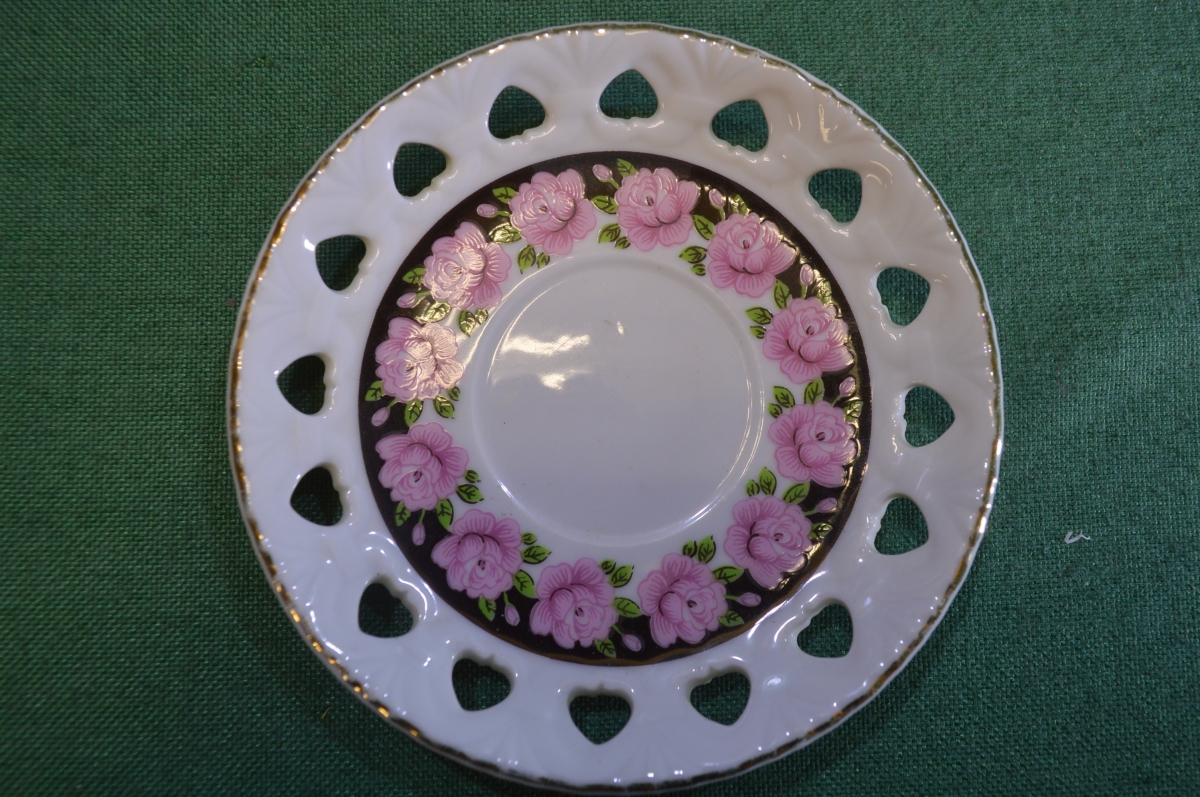 Тарелка фарфоровая, блюдечко. Розы, сердечки. Фарфор.