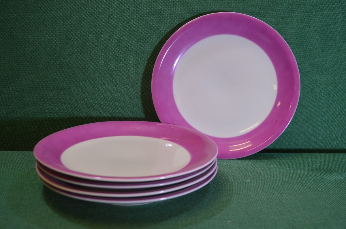 Тарелки фиолетовые, набор (5 штук). Фарфор из ГДР.