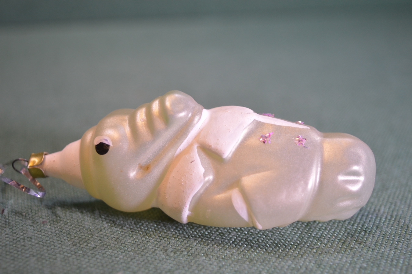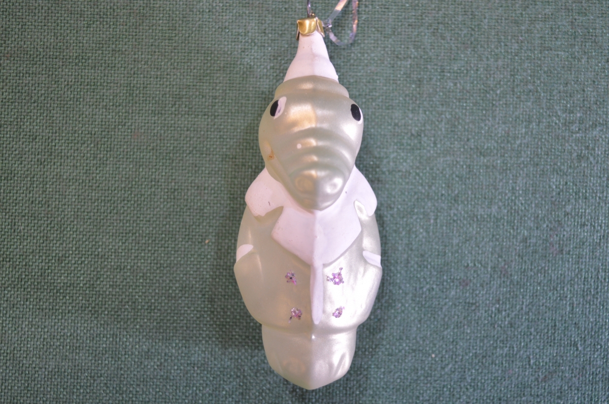 Игрушка елочная стеклянная "Крокодил". Серебристый, матовый. Стекло, подвес.
