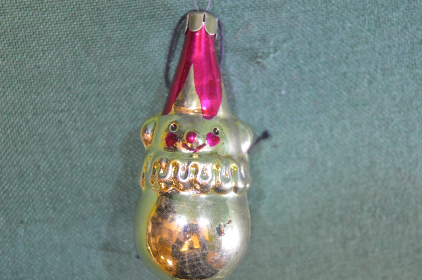Игрушка елочная стеклянная "Клоун ушастый, арлекин, неваляшка". Стекло, подвес. СССР.
