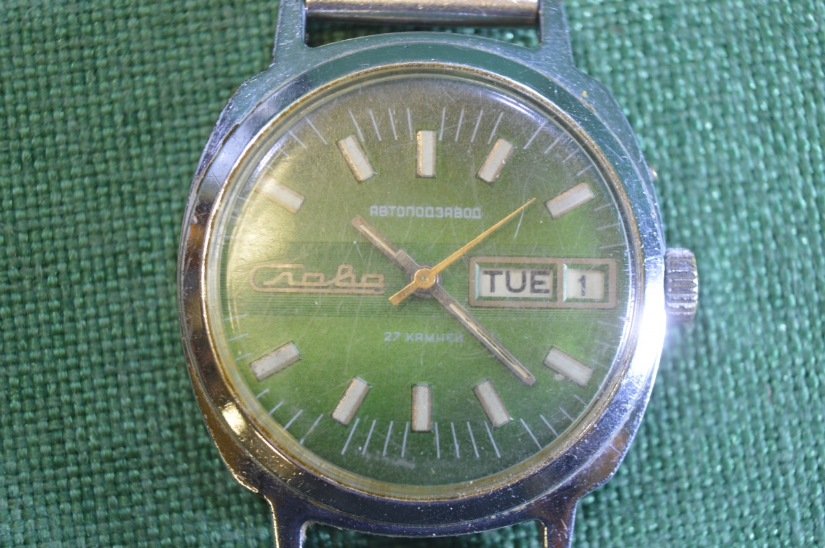 Часы наручные механические Слава. Автоподзавод. 27 камней. СССР.