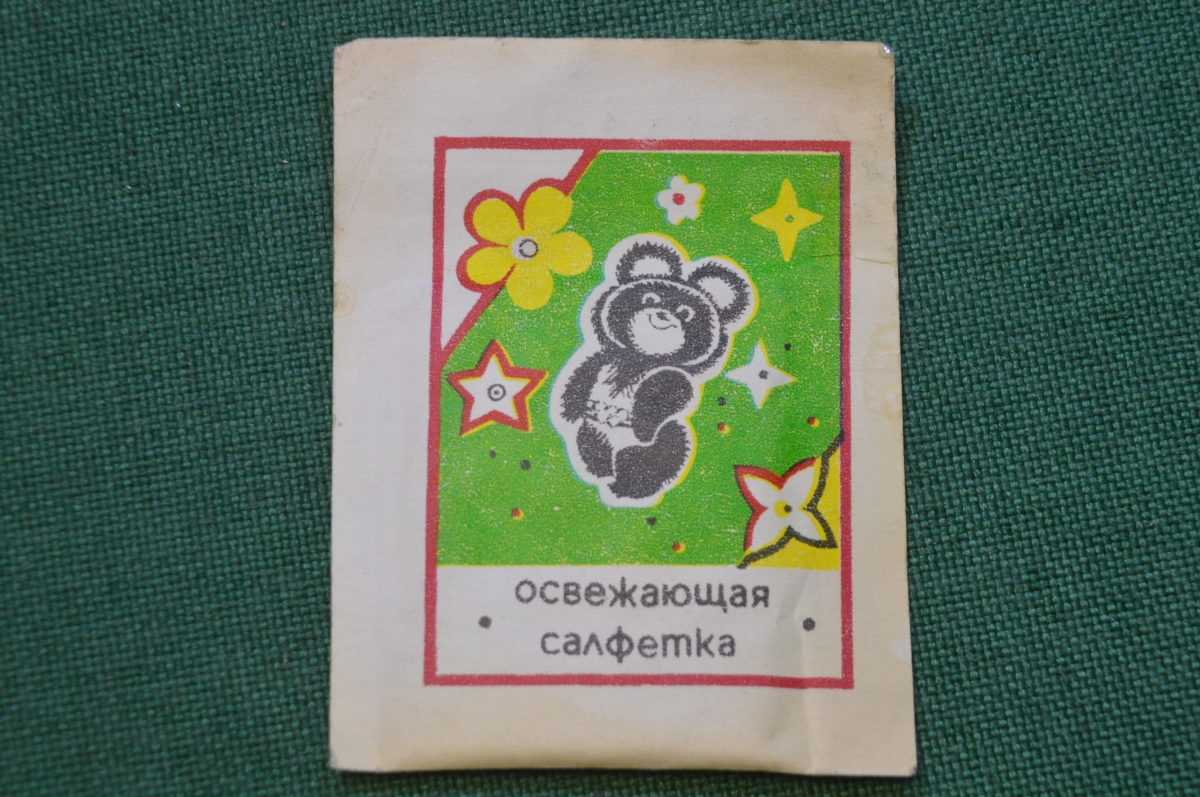 Салфетка влажная освежающая. Мишка. Олимпиада 1980 Москва. СССР.