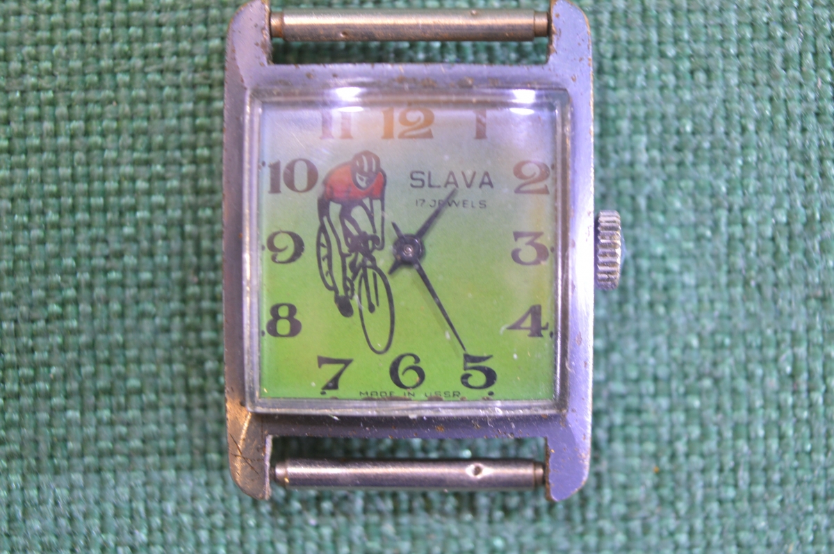 Часы наручные механические детские Слава Slava. Велосипедист. Велосипед. СССР.