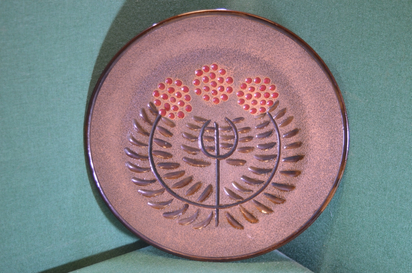 Тарелка большая настенная керамическая. Ручная работа. Керамика. Бирка. СССР.