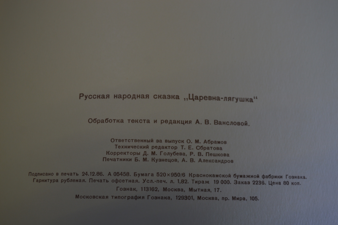 Книжка "Царевна-Лягушка". Сказка. Рисунки Билибина. Гознак, 1987 год. #K16