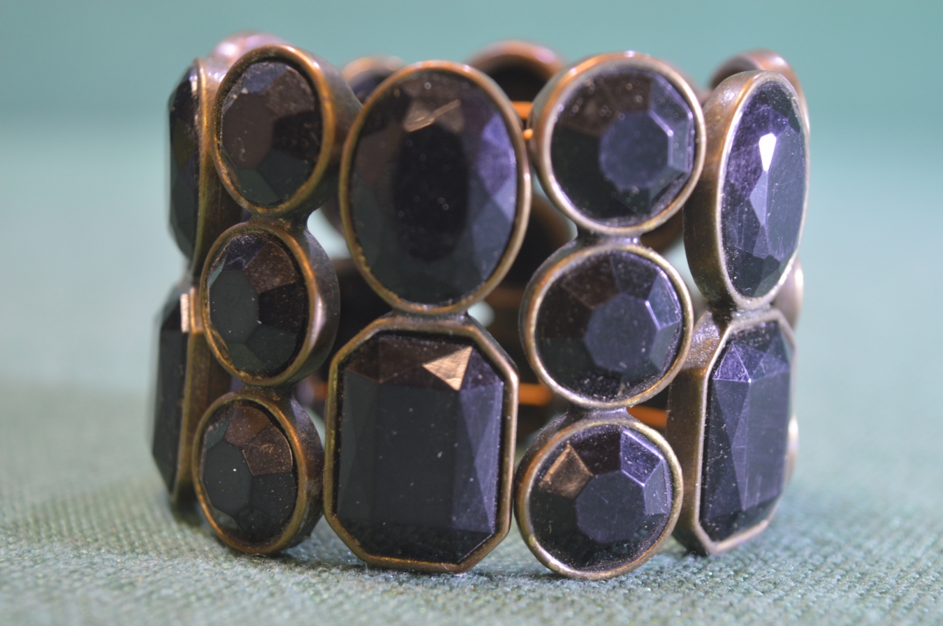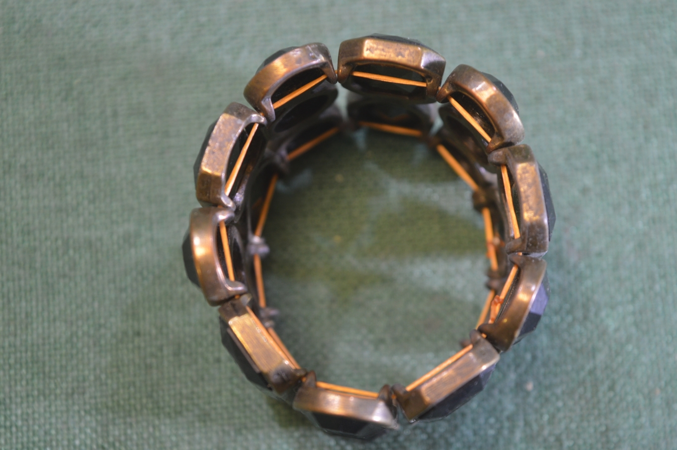 Браслет женский широкий. Металл. Черные вставки. СССР.