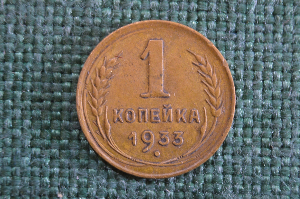 Монета 1 копейка 1933 года. Погодовка СССР.