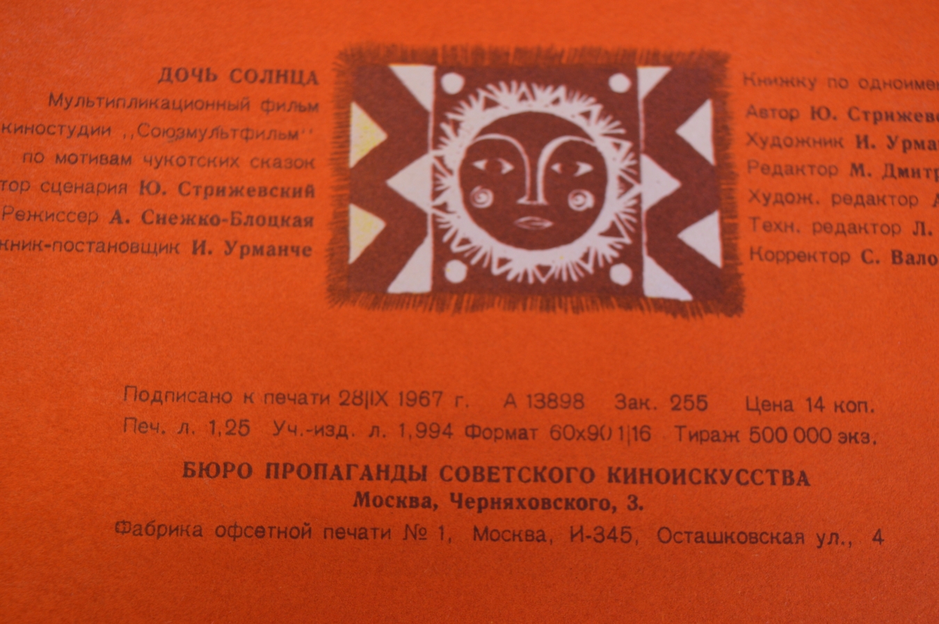 Книга, книжка детская. Фильм-сказка "Дочь солнца", 1967 год. #K15
