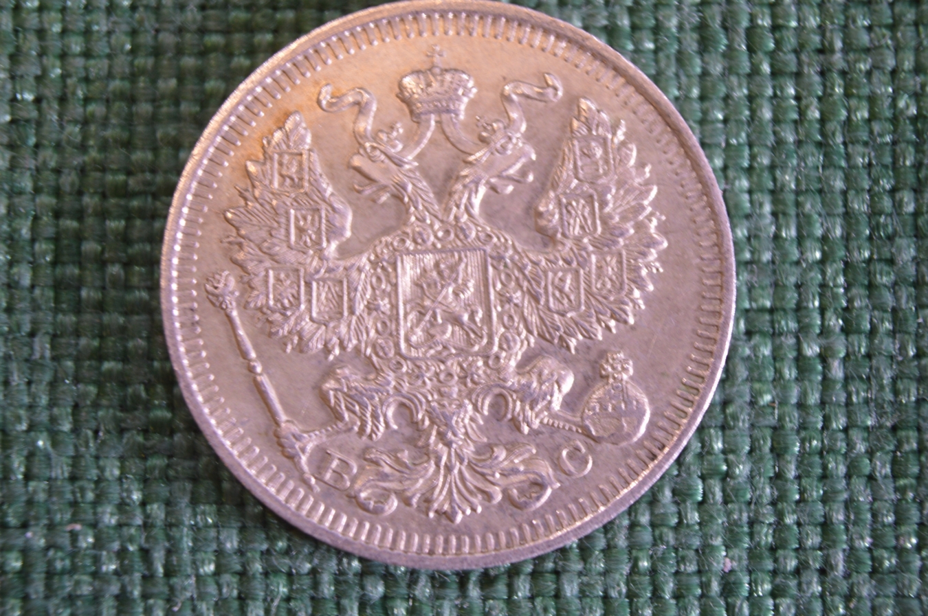 Монета 20 копеек 1913 года. Серебро. Царская Россия. UNC