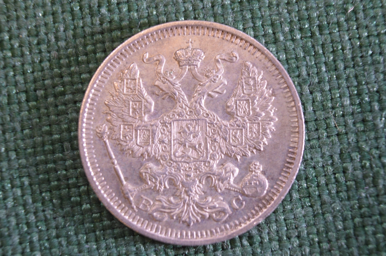 Монета 20 копеек 1914 года. Серебро. Царская Россия. UNC