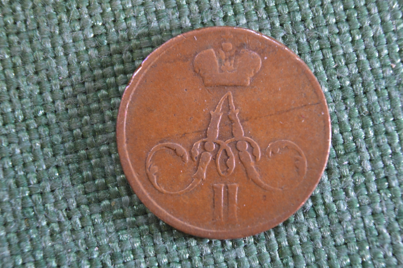 Монета Денежка 1857 года. Царская Россия.