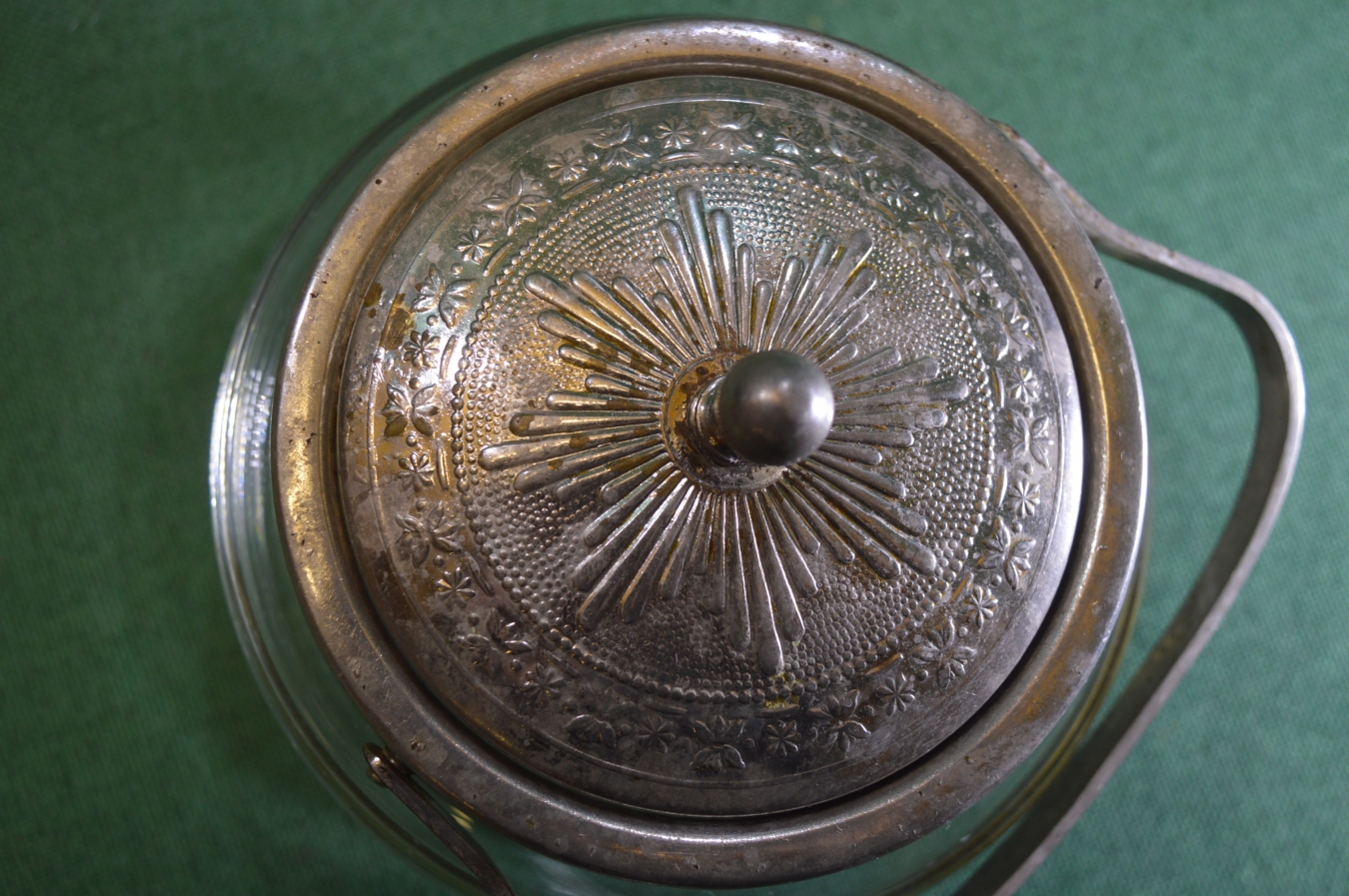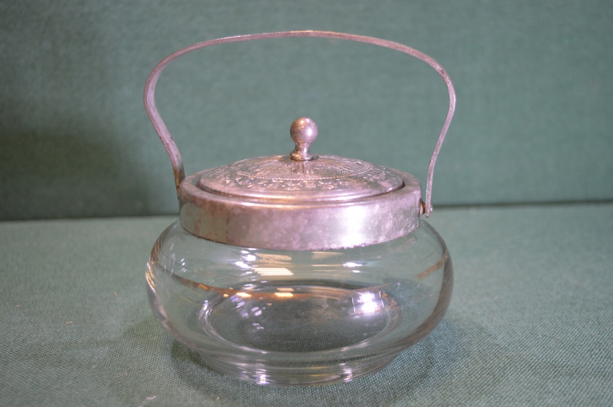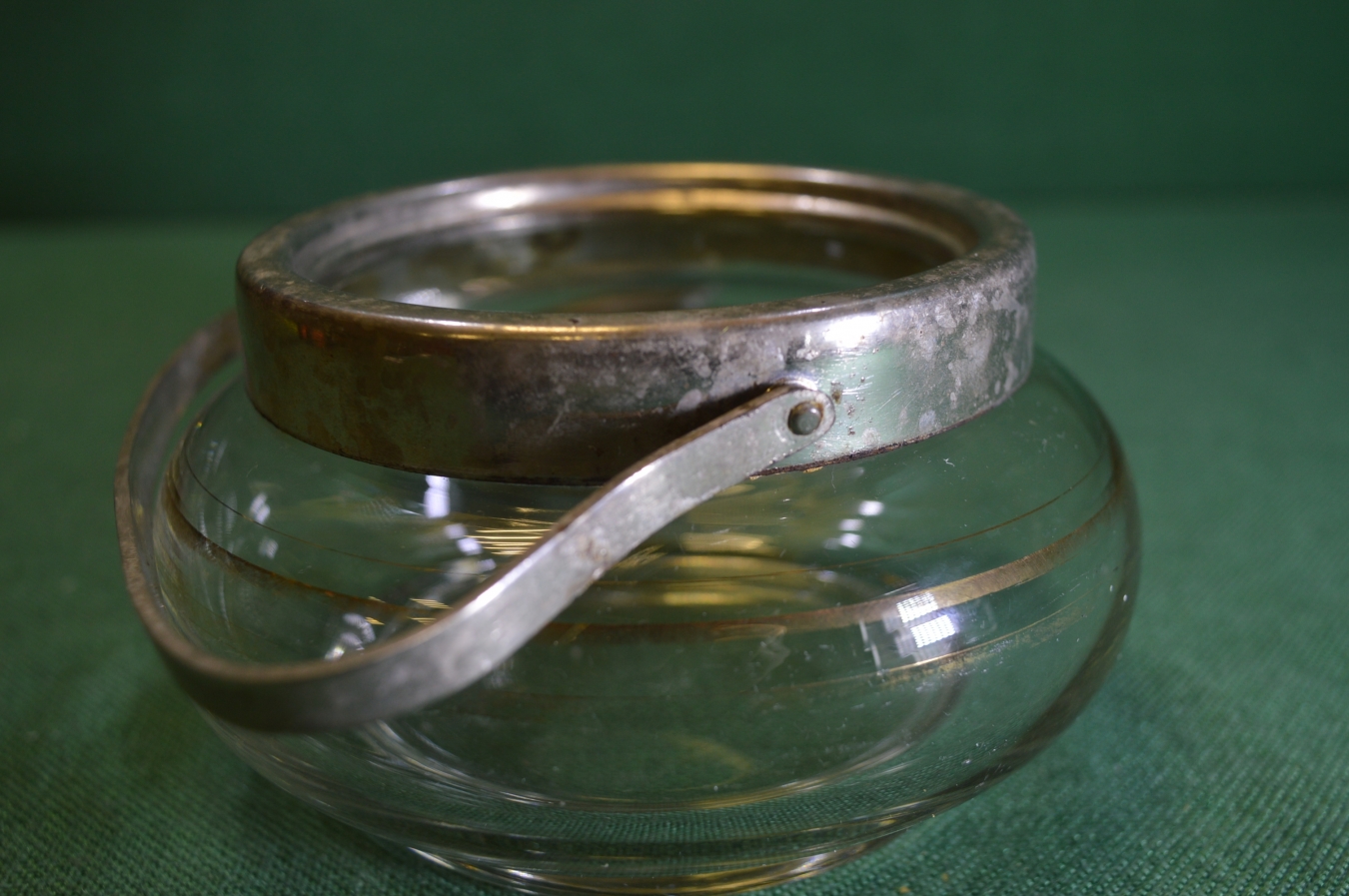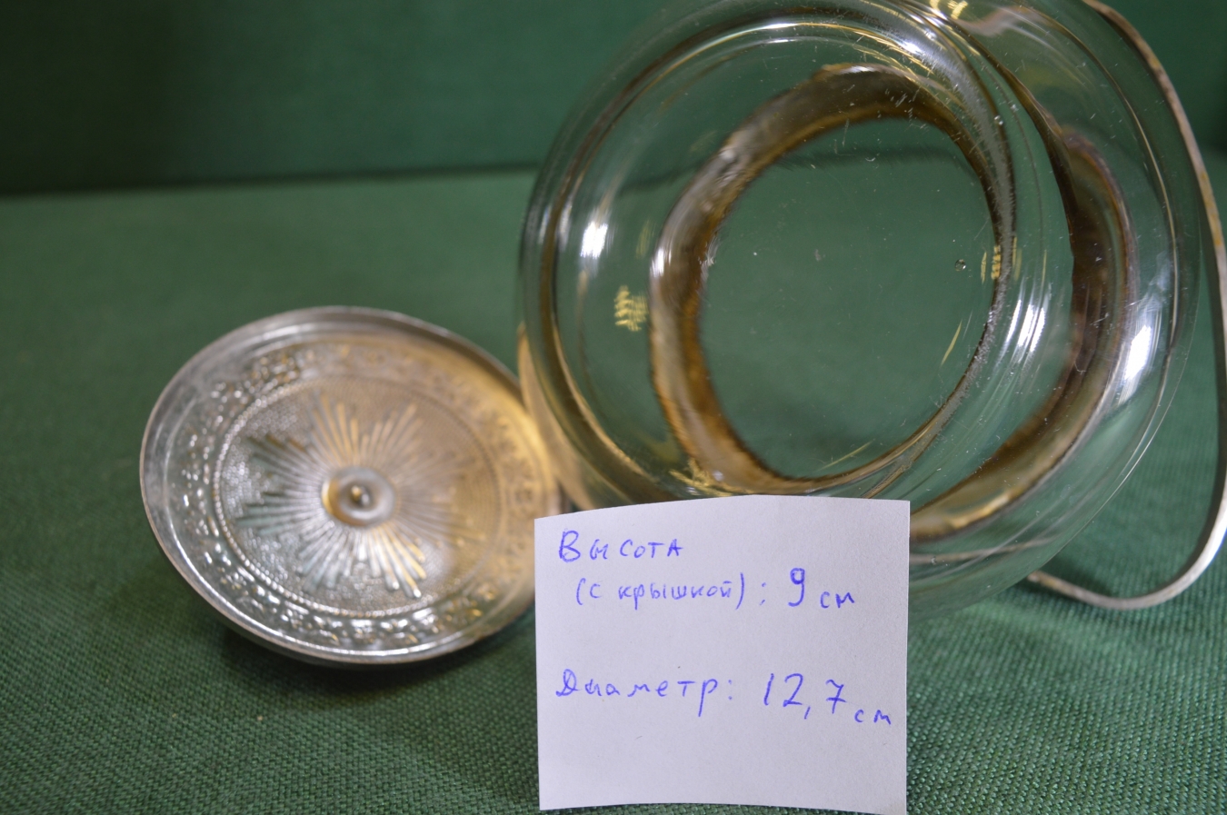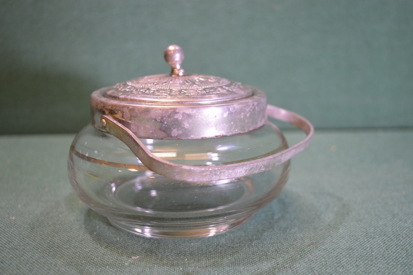 Сахарница стеклянная, с крышкой. Стекло, металл. СССР.
