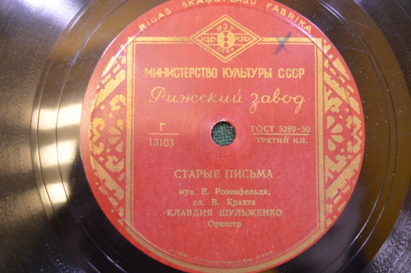 Пластинка патефонная "Старые письма. Руки". Клавдия Шульженко. Рижский завод.