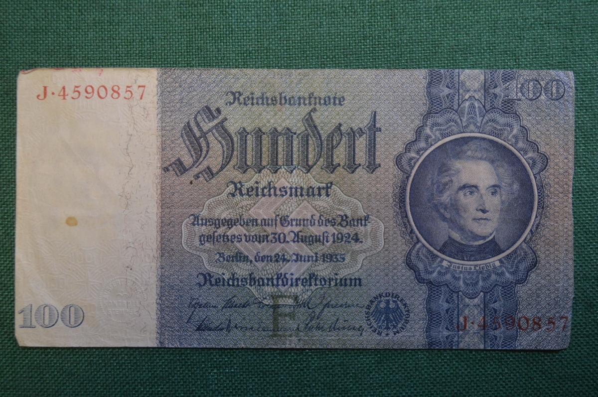 Бона, банкнота 100 марок 1924 год. Сто. Рейхсбанкнота. Веймар, Германия.